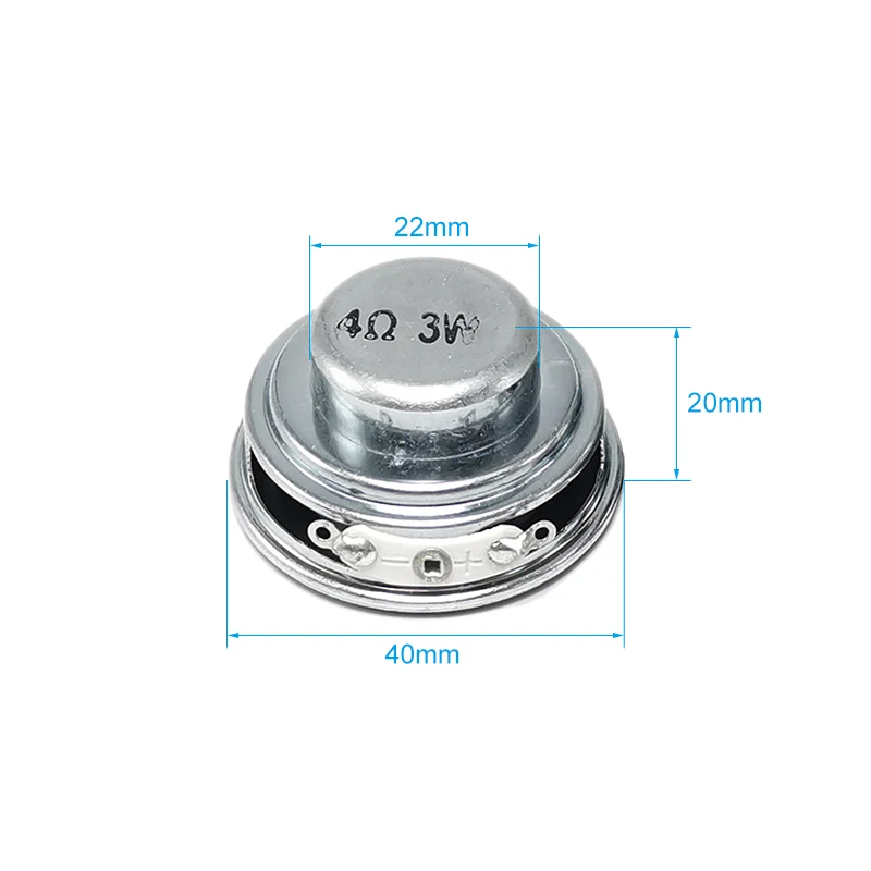 Diameter: 40mm impedance: 4ohm, 8ohm, optional rated power input: 3W max power input: 5W Resonant Freq (FO): 160Hz specialty: full frequency freq response: 160Hz-20KHz Sensitivity (SPL): 83dB (M/W) voice coil size: 16 cores Cone cone: glass fiber cone + rubber edge magnet: neodymium magnet Net Weight:25.5g