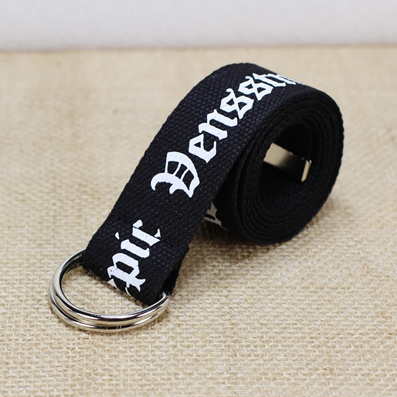130cm Fashion Neutral Nylon Canvas Belt Printing Double Rings Canvas Belt Student Belt for Women