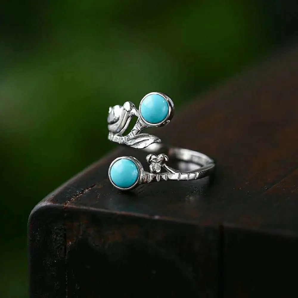 Название: Кольца из серебра 925 пробы для женщин, Изящные Ювелирные изделия, бирюзовые маги, модельное кольцо из стерлингового серебра, регулируемое серебро