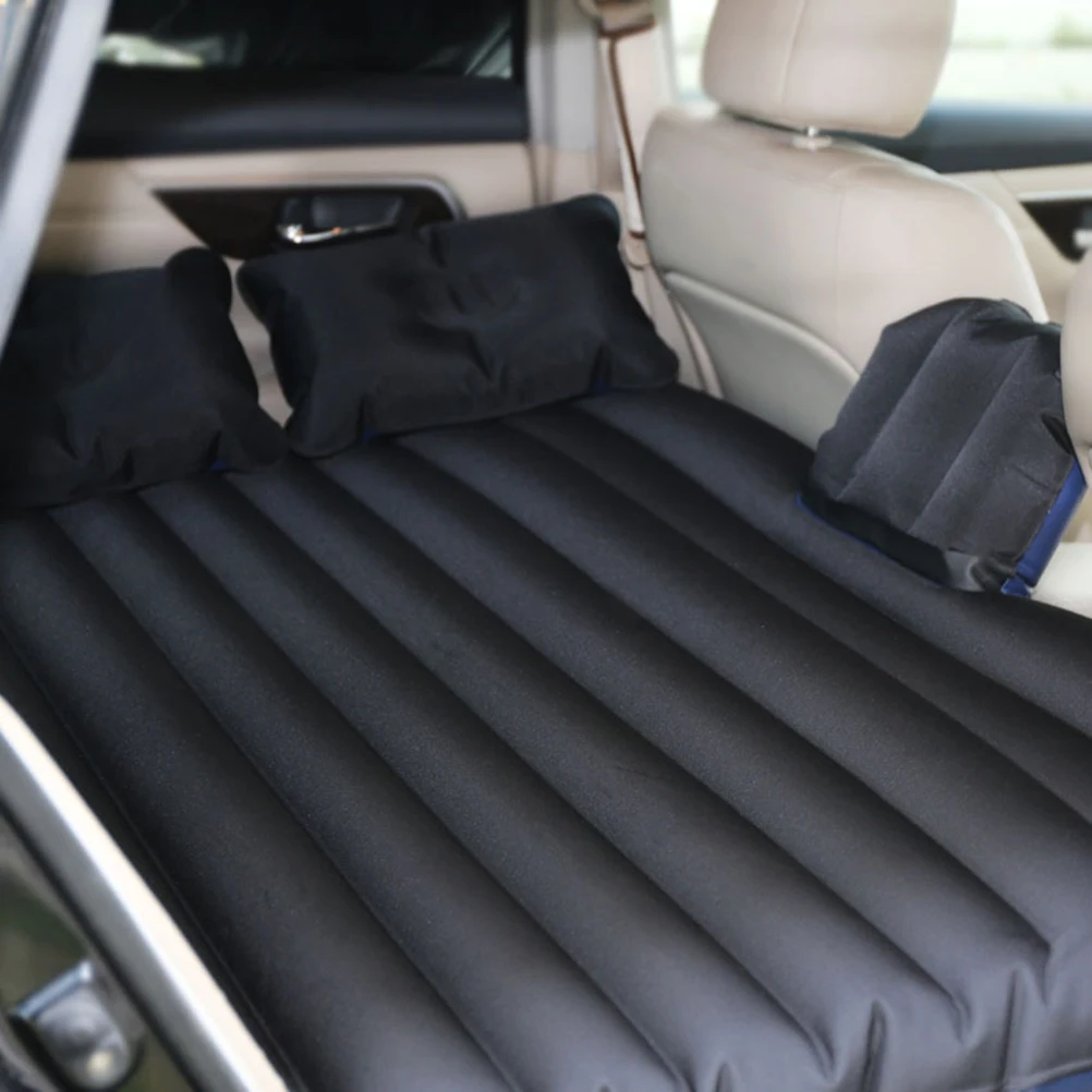 Надувной матрас для путешествий в автомобиле, для путешествий, кемпинг, заднее сиденье из ткани Оксфорд, удлиненный матрас и две подушки (черный)