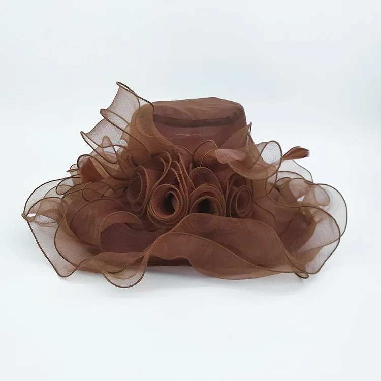 Ретро с широкими полями шляпы для чайных вечерние платье для женщин Повседневная одежда органза шляпа церковные шляпы пляж случайные вступительные шапки