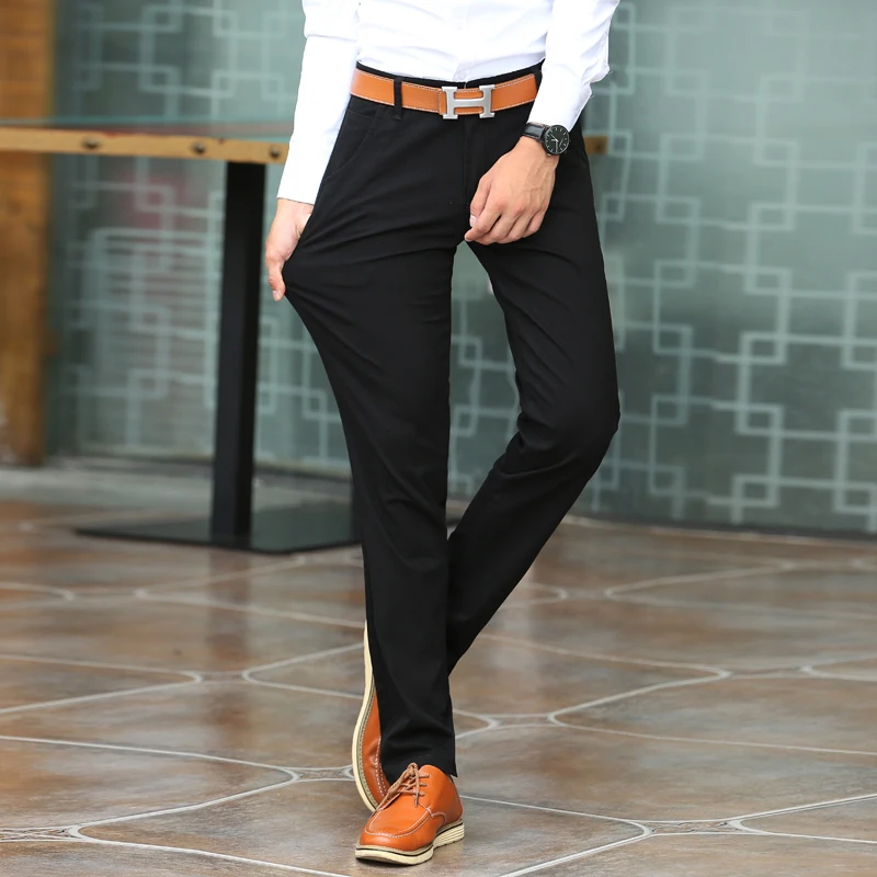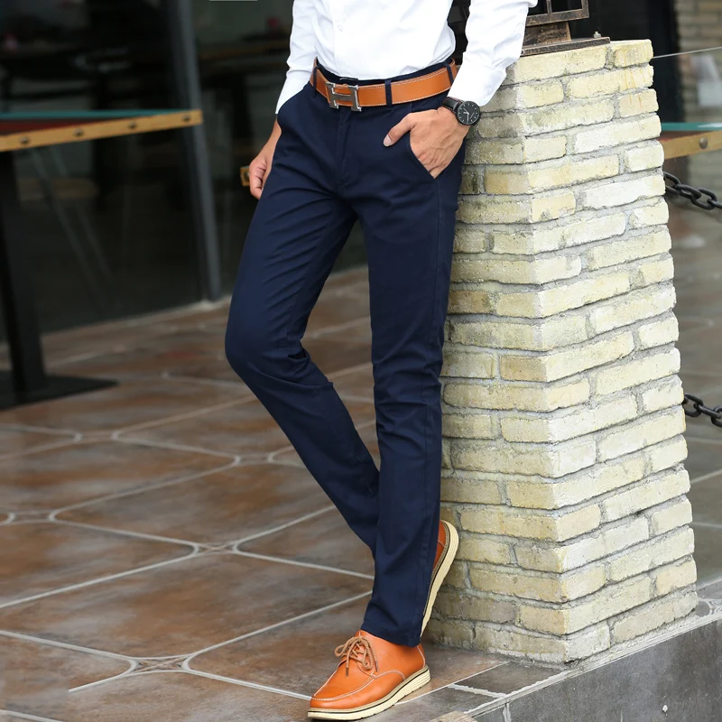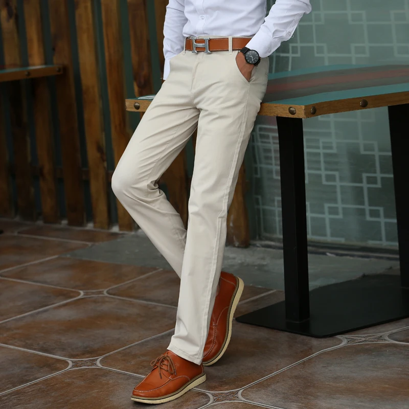 Мужские брюки цвета хаки, 2018, летнее повседневное платье, классические брюки, мужские облегающие прямые брюки, для работы, бизнес, джоггеры, длинные, хлопок, синий, черный, 38