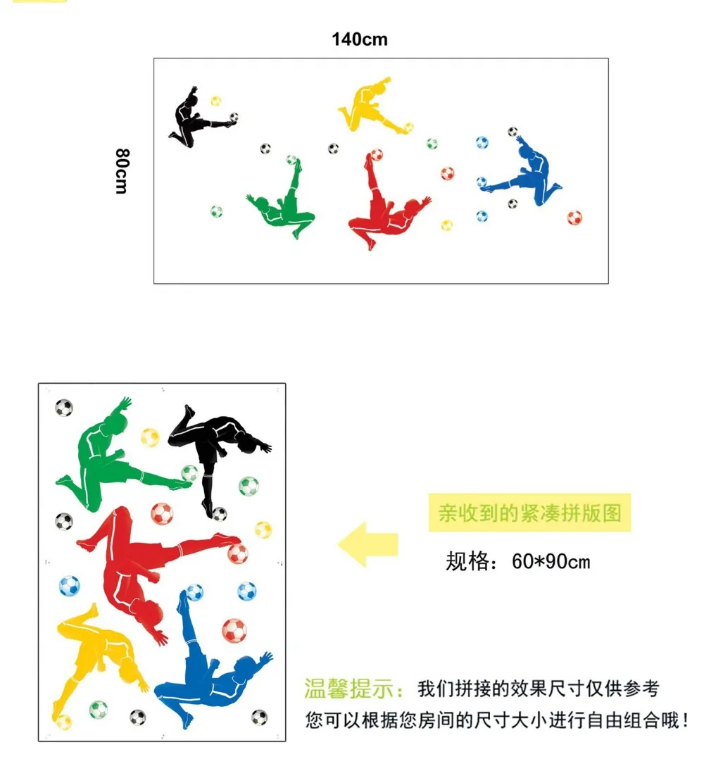Цветные футболисты Наклейки на стены наклейки домашние гостиная салон класс вечерние физические виды спорта обои