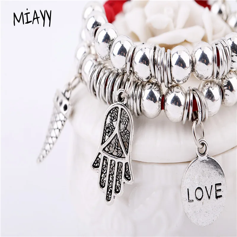 Модные женские браслеты из медного сплава, антикварный бисер серебряного цвета