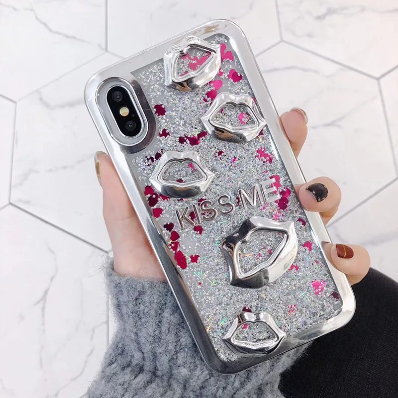 Новый динамический жидкости гальваническим зыбучие пески чехол для телефона для iPhone X сексуальные губы Мягкие TPU Чехлы для iPhone 7 8 6 S плюс Роскошный чехолНам $3,85/Шт