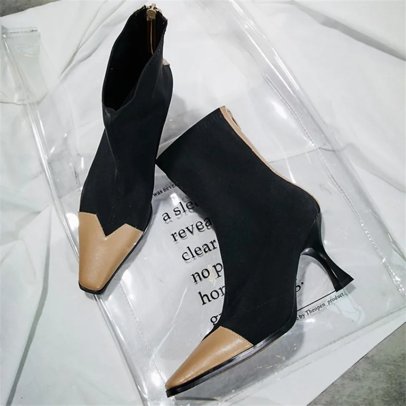 | Новинка 2018 года; Женские ботинки из эластичной ткани на высоком каблуке; Ботильоны в стиле пэчворк с квадратным носком; Женские туфли-лодочки; Botines Mujer |