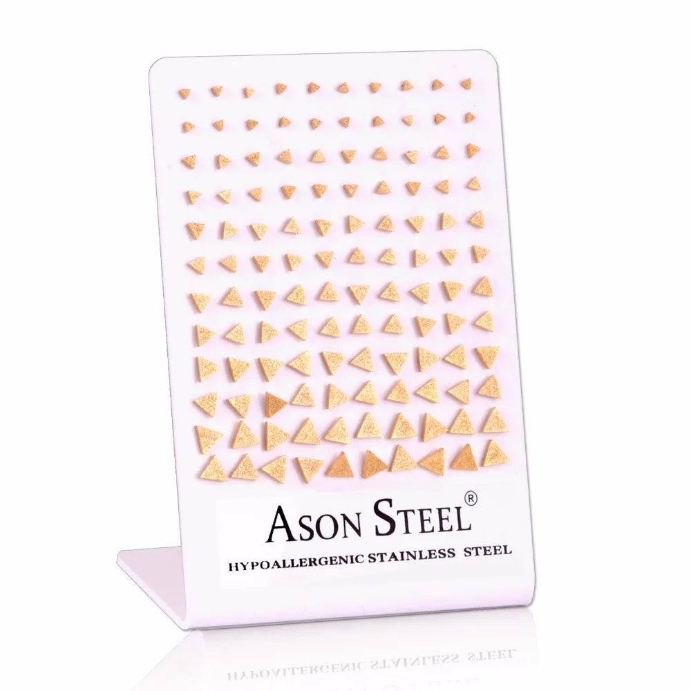 Асон сталь размер 3-8 мм Ювелирные изделия анти-аллергические серьги из нержавеющей стали Треугольный Стиль Золото Мороз цвет серьги гвоздики Материал: нержавеющая сталь 316L Цвет: золото Количество: 60 пар Примечание: 1. При заказе на сумму более 180 долл. США бесплатная доставка службами DHL/UPS/TNT/FEDEX. 2. Замеры сделаны вручную, поэтому возможны отклонения от 1 до 2 мм. Пожалуйста, обратитесь к физическому размеру. 3. Не получили? Доставлено с повреждениями? Просто свяжитесь с нами перед тем, как оставить отрицательный отзыв, мы решим ваш вопрос.