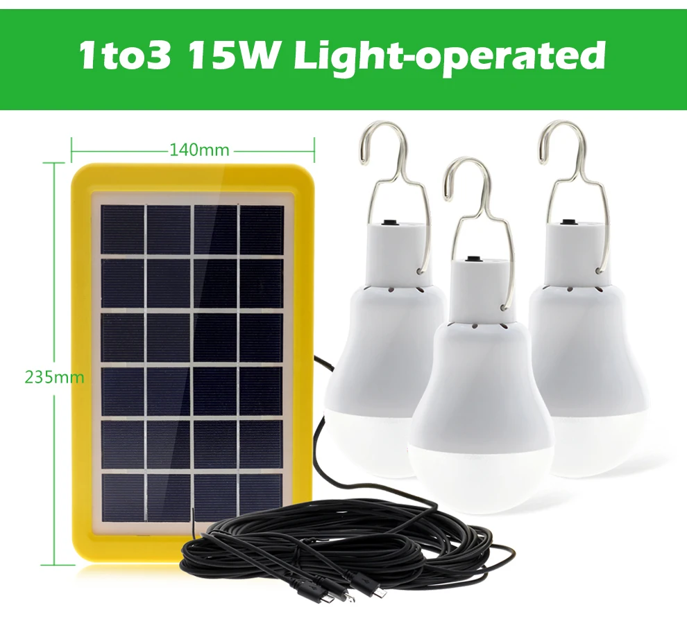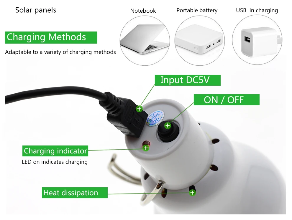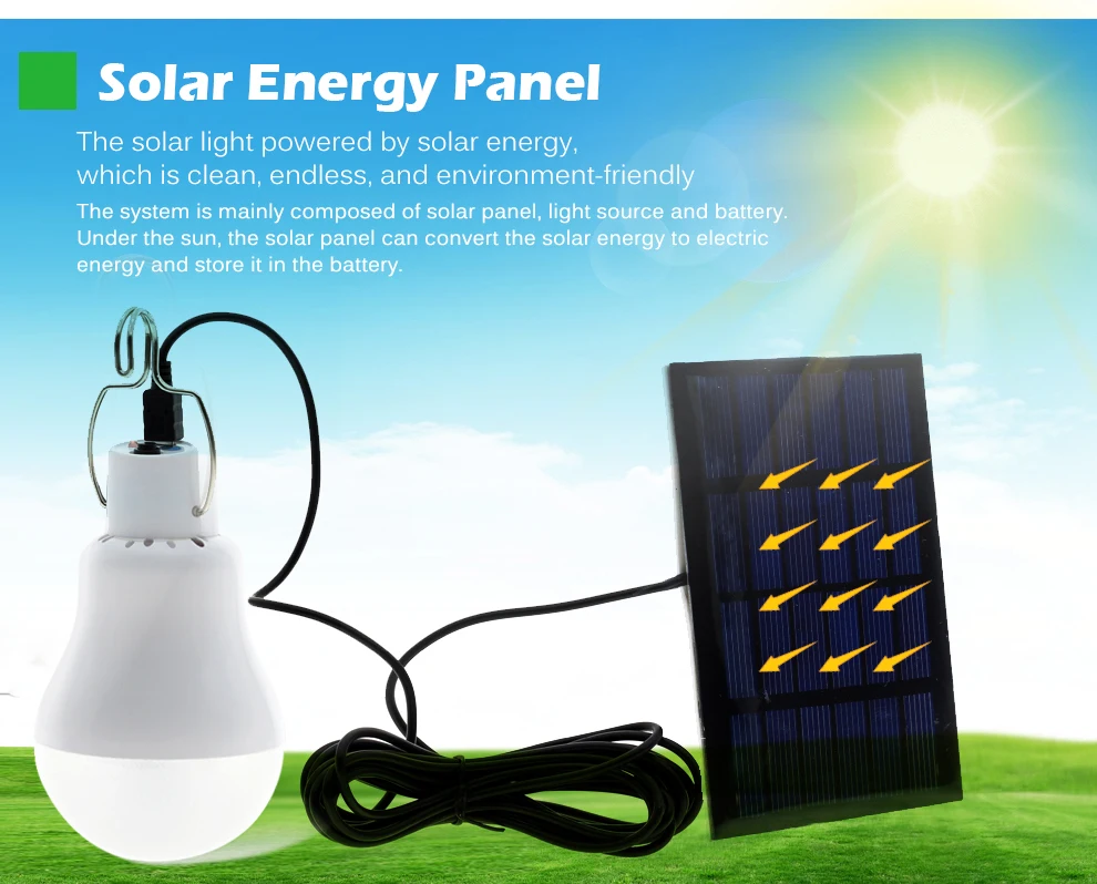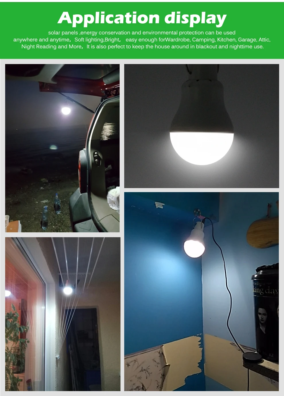 3. During daytime, when there is sunshine, connect the solar panel with led light bulb, the solar panel can convert the solar energy to electric energy and store it in the battery of solar led bulb. The charged bulb can be used as a mobile lighting lamp.