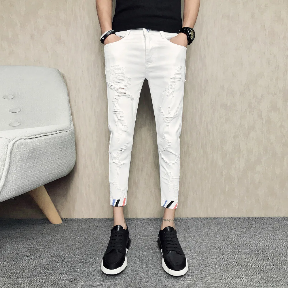 Твердые мужские джинсы абсолютно новый тонкий Fit случайный хип-хоп рваные джинсы мужчины