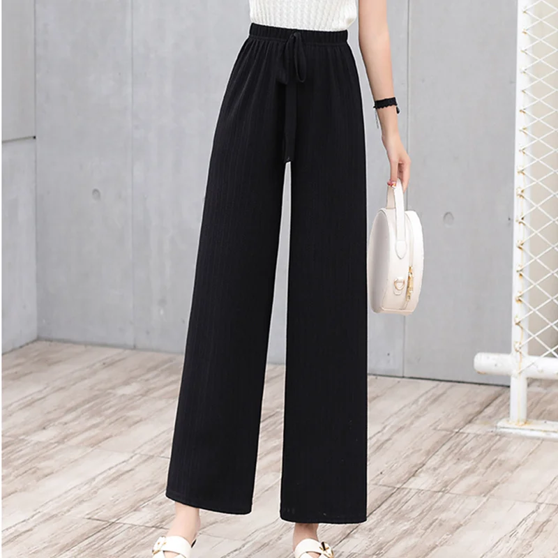 2018 однотонные повседневные свободные брюки женские весенне-летние льняные плиссированные эластичные брюки с высокой талией осенние широкие брюки с высокой талией