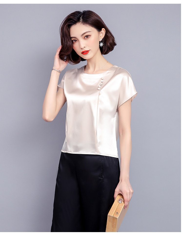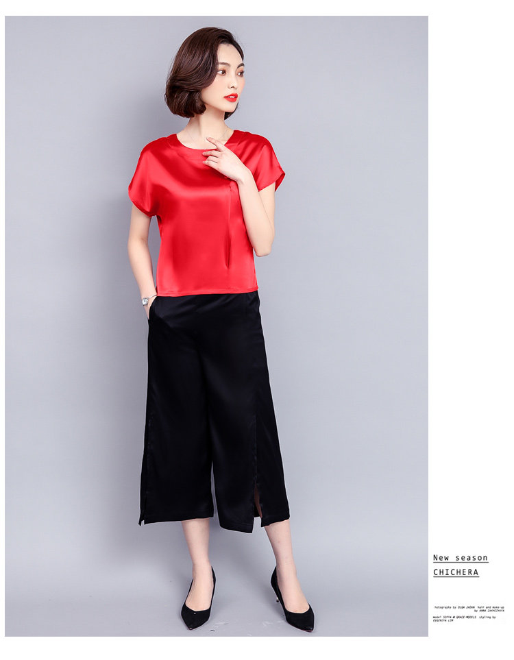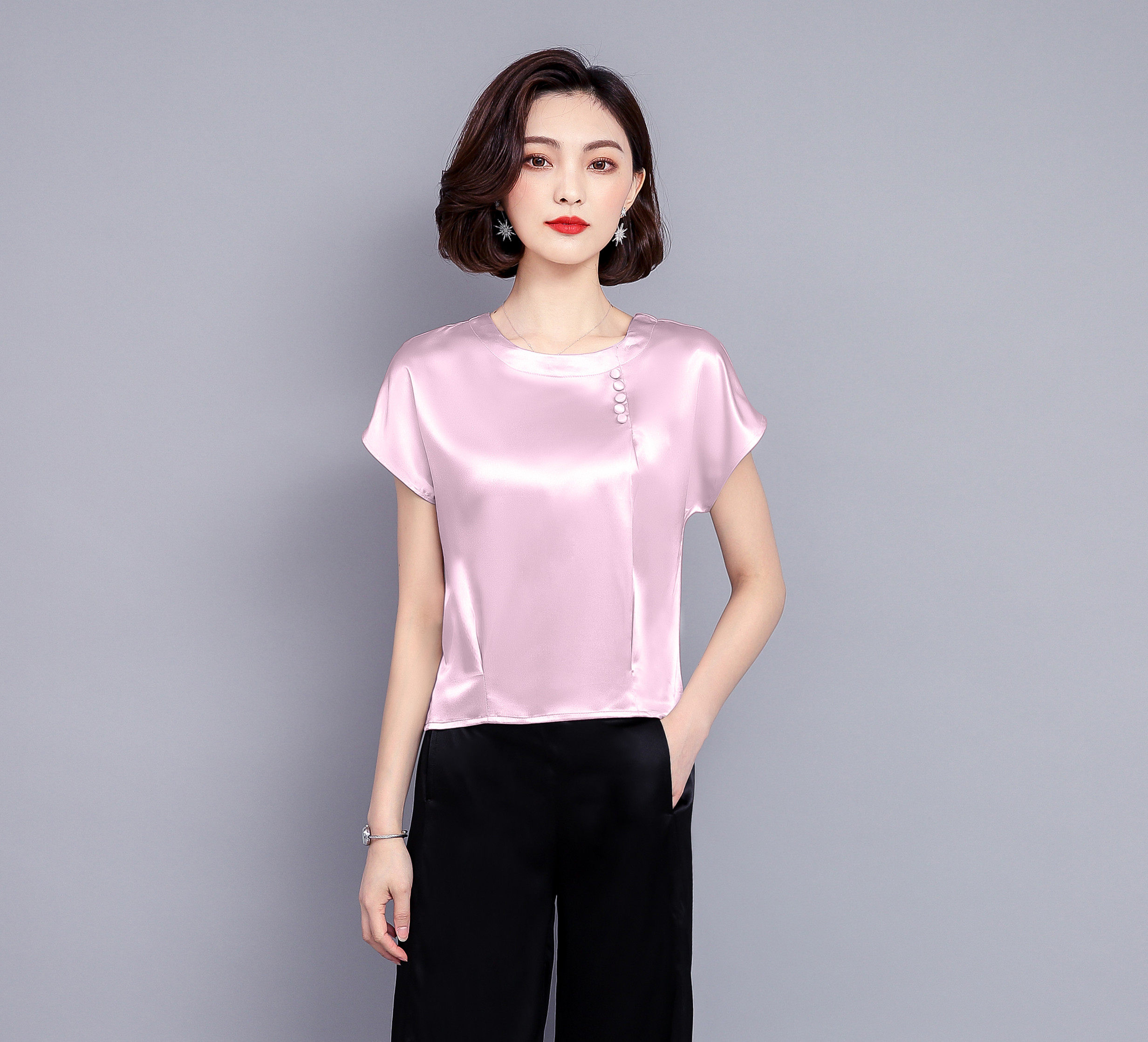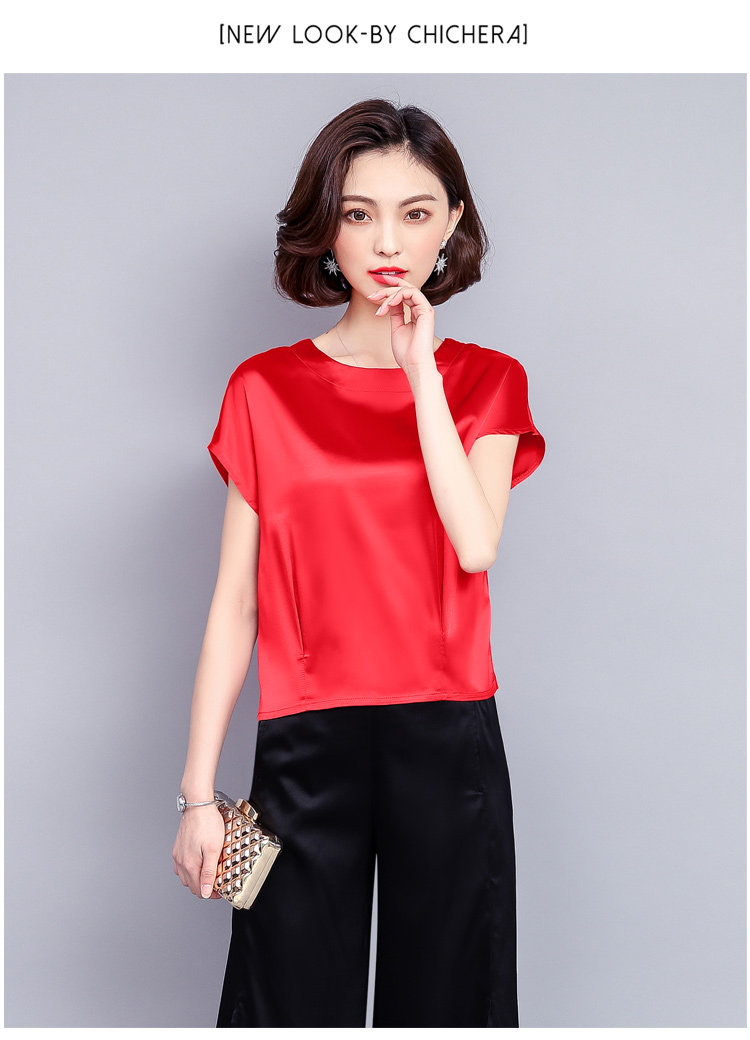 2018 Новая модная летняя одежда женские топы однотонные свободные шелковые блузки