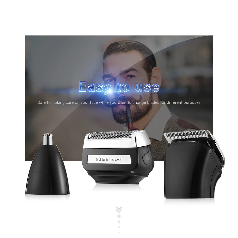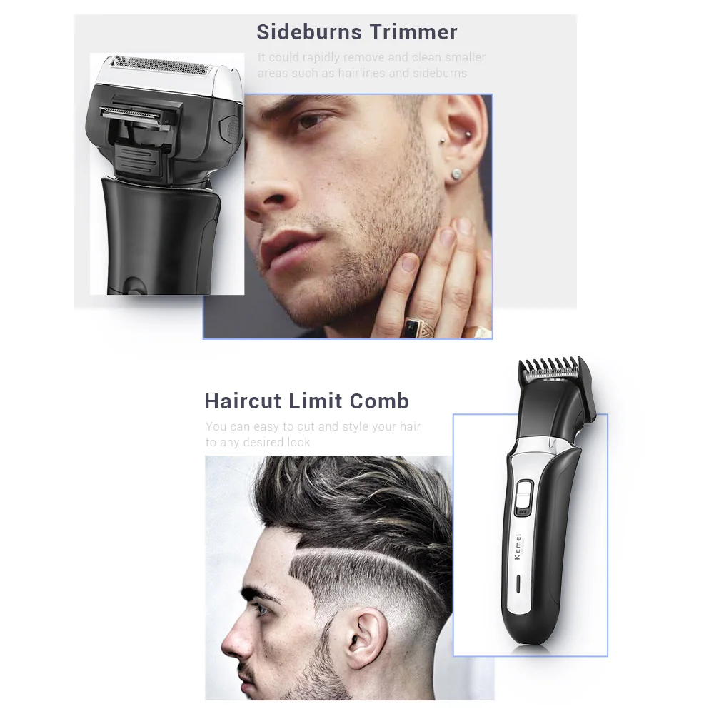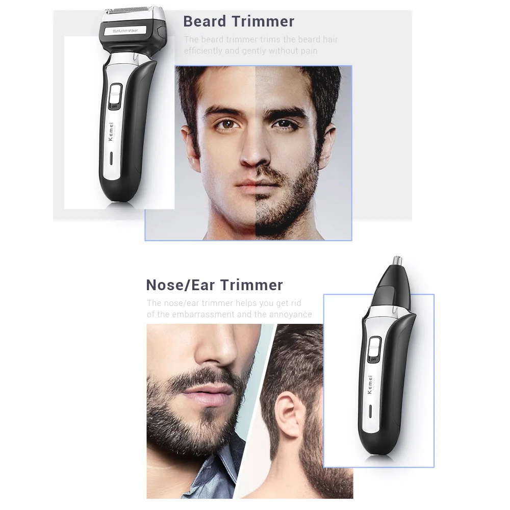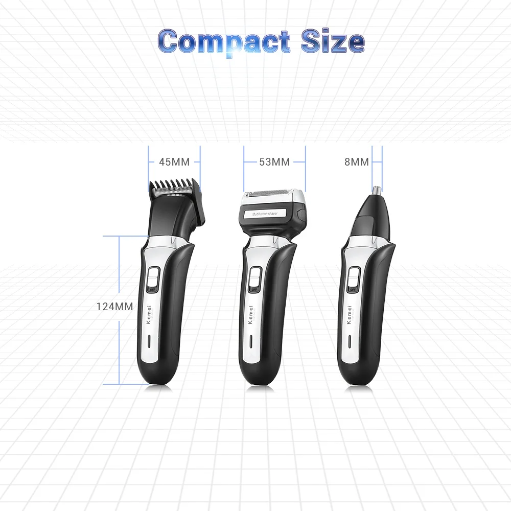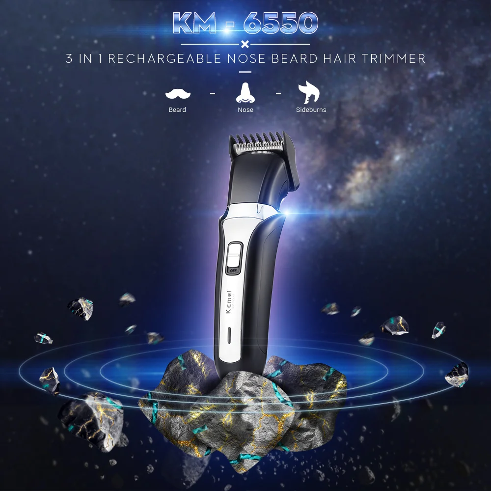 Перезаряжаемый триммер 3 в 1 для носа, бороды, ушей и бакенбард Kemei KM - 6550 с 3 лезвиями для стрижки
