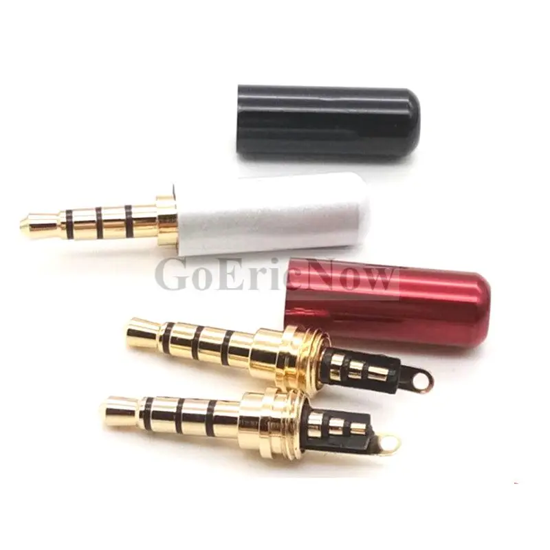 Медь позолоченные 4 отверстие с микрофоном 3,5 мм штекер стерео мини-разъем пайки