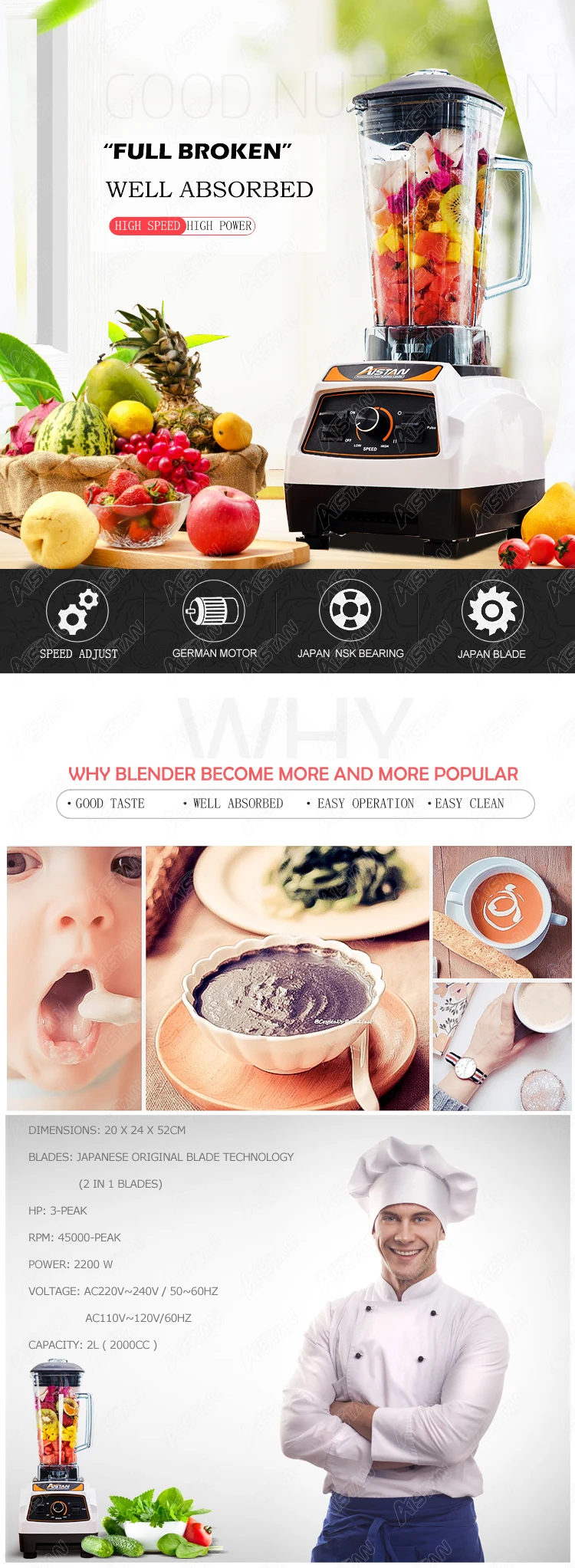 Электрический блендер мощный Миксер для еды смузи апельсиновый сок делая машину 2 литра 3HP BPA Бесплатный пищевой процессор