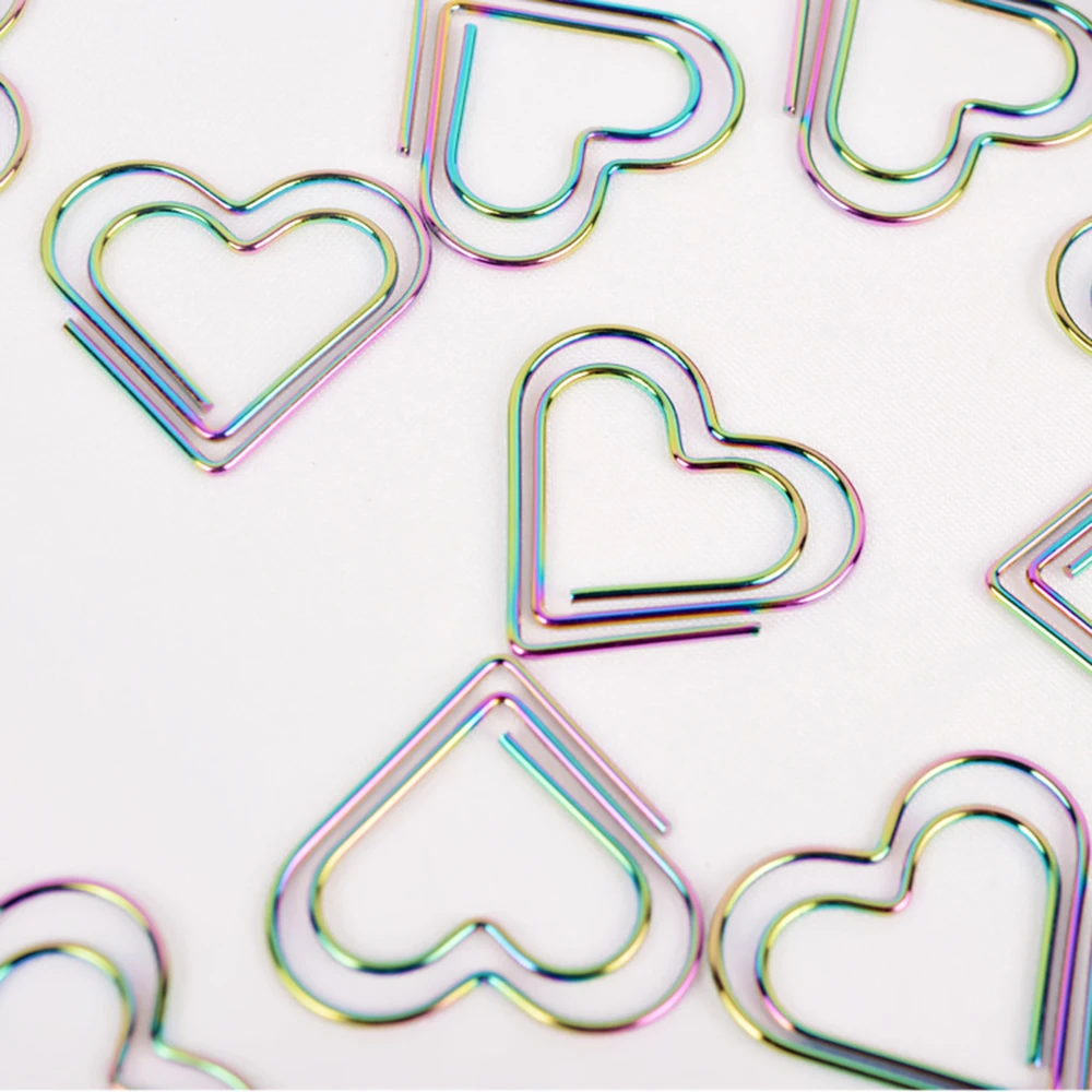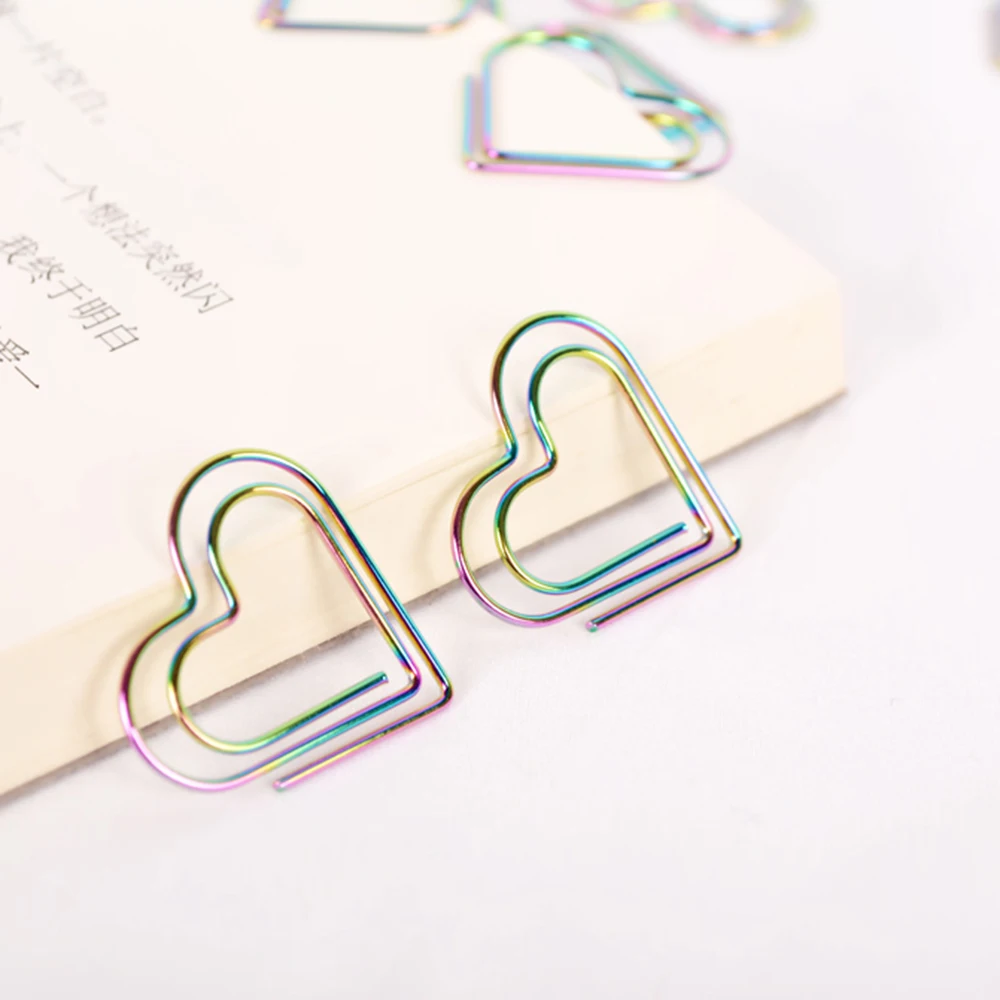 12 шт./лот радужные Зажимы для бумаги в форме сердца, закладки, инструменты для планировщика, инструменты для скрапбукинга, металлические скрепки, скрепки