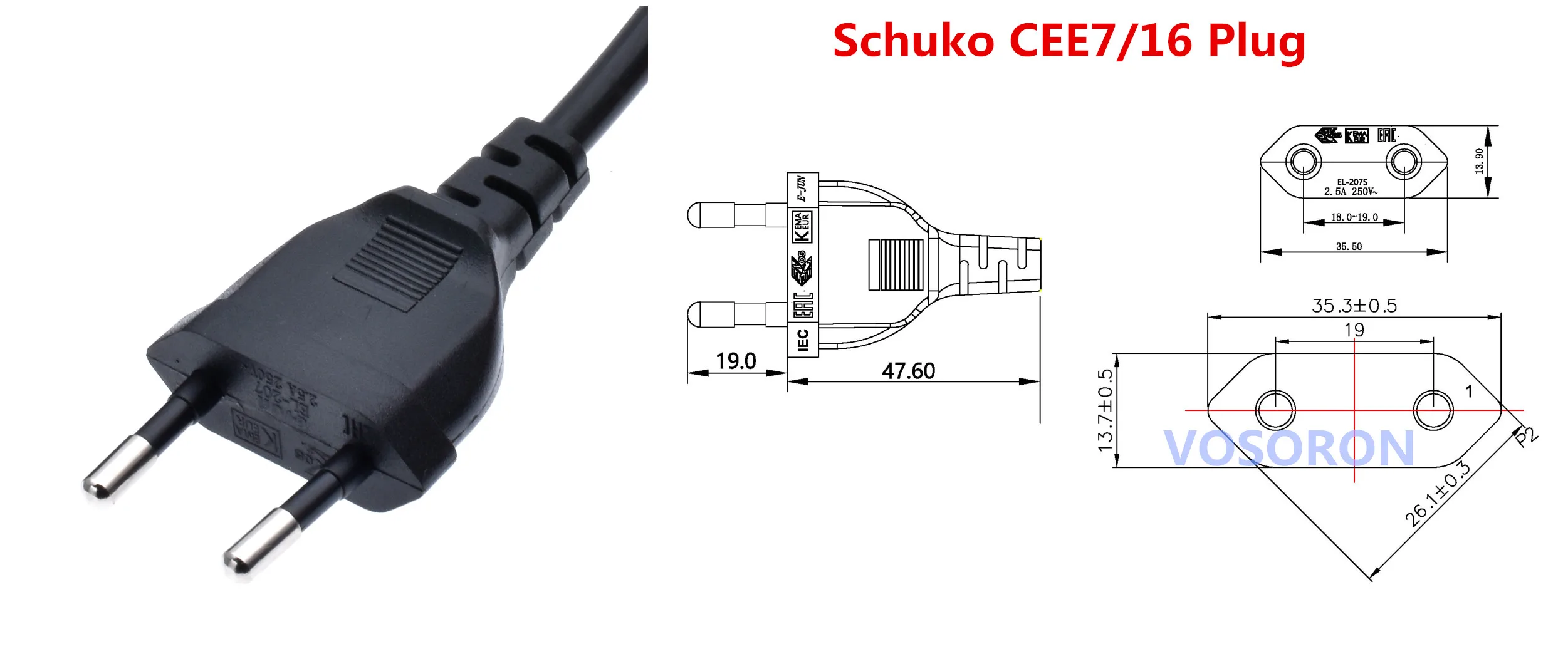 Конец кабеля 1, Тип разъема | Штепсельная Вилка Schuko CEE7/16 |