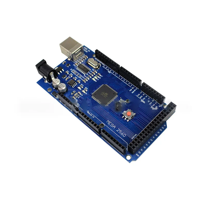 The Arduino Mega 2560 is a microcontroller board based on the ATmega2560. It has 54 digital input/output pins (of which 14 can be used as PWM outputs), 16 analog inputs, 4 UARTs (hardware serial ports), a 16 MHz crystal oscillator, a USB connection, a power jack,an ICSP header, and a reset button.