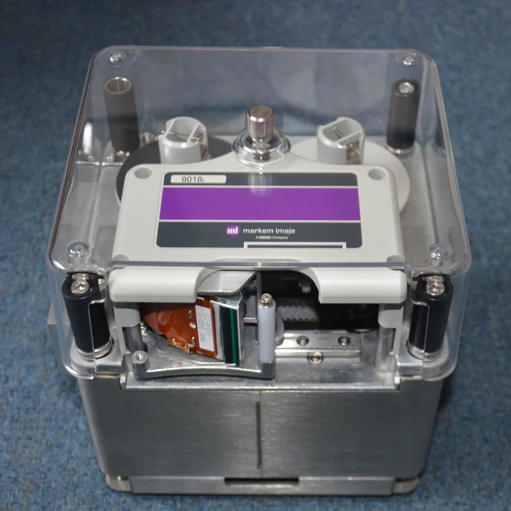 Markem 8018 thermal transfer overprinter is a thermal transfer coding solution for flexible packaging applications requiring high quality variable printing at moderate print speeds. It delivers high quality printing on flexbile packaging films foils and labels for continuous and intermittent operations.
