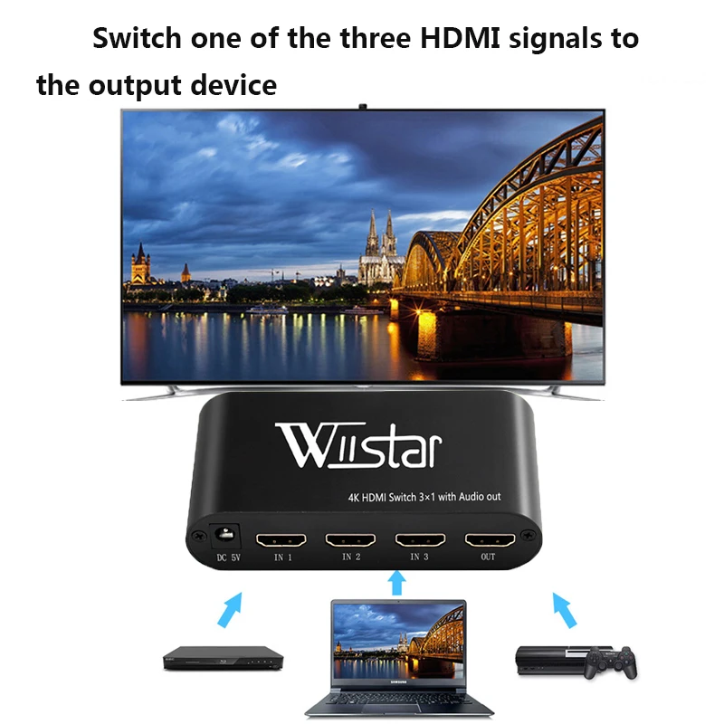 2. Порты и разъёмы: 3x HDMI (вход), 1x HDMI (выход), 1x3,5 мм jack (выход),SPDIF (выход)3. Направление передачи: HDMI к HDMI4. С пультом дистанционного управления, вы можете легко переключаться с расстояния5. Разрешение: 4K × 2K / 3D / 1080P, 720p 480i/ 576i/ 480p/ 576p/ 1080i/ 1080P Совместимость6. Рекомендуется использовать кабель HDMI 1,4 в качестве входного кабеля7. Поддерживает HDMI 1,4 в ответ на ультра-Высокое Видение 4K x 2K / 30Hz. Он может выводить видео высокого качества и хорошо работает в музеях и телевизионных магазинах.8. Совместимые модели: smart TV, такие как Fire TV / Apple TV / SONY TV, Blu-ray / DVD / PC, PS4 Pro, Nintendo Switch и другие игровые консолиПримечание: