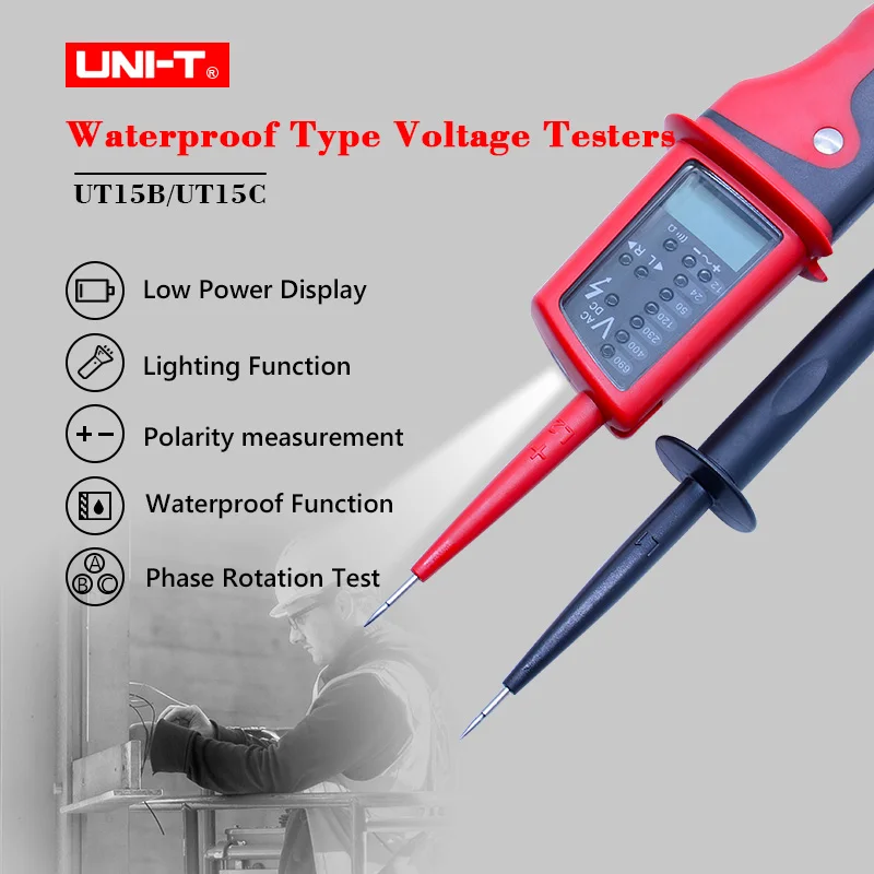 UNI-T UT15C Цифровой Измеритель Напряжения Водонепроницаемый AC/DC тестеры напряжения ЖК-дисплей 24 V ~ 690 V Авто диапазон вращения фазы Бесплатная доставка