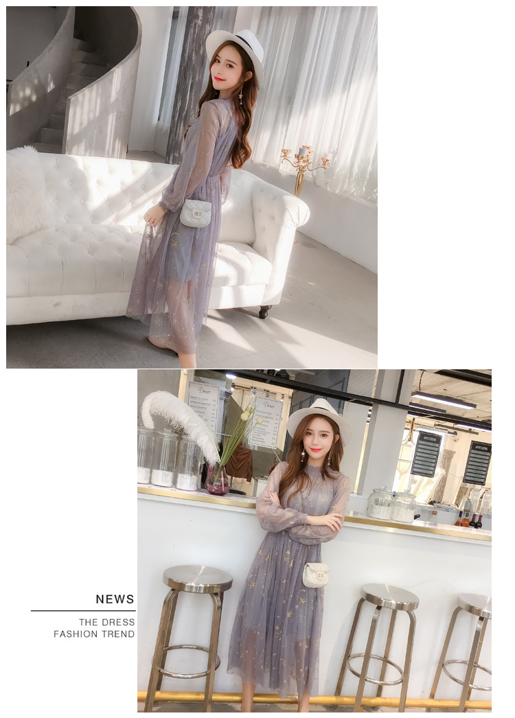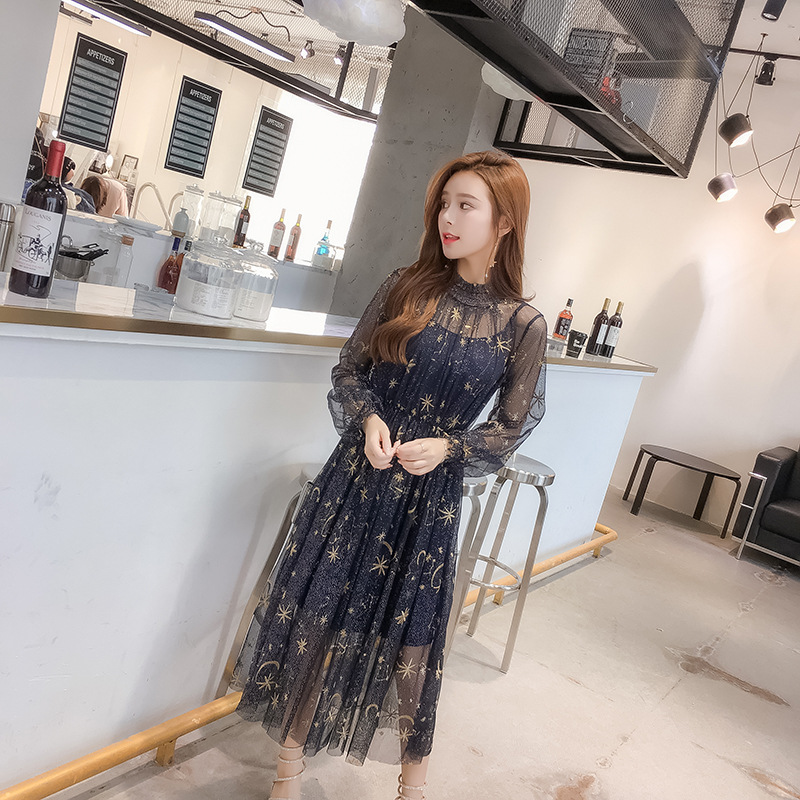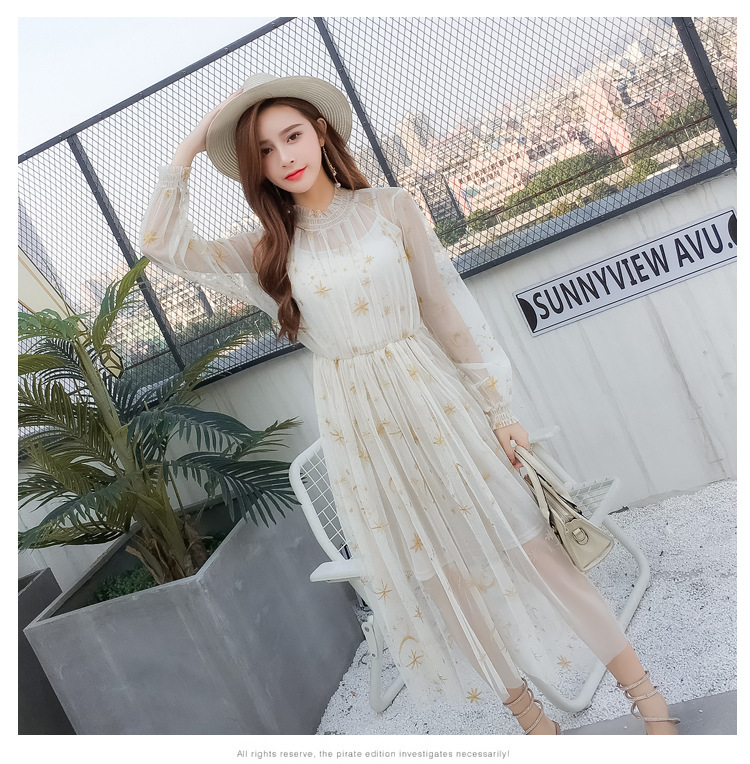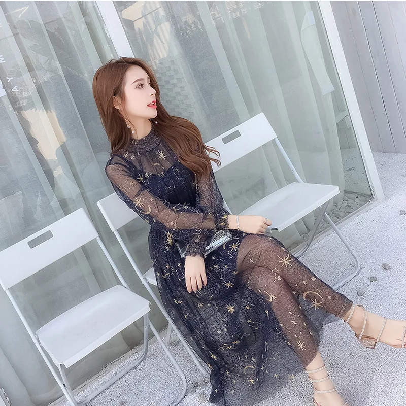 Прозрачная Юбка на бретельках, свадебное Сетчатое Прозрачное платье с рукавами, гофрированное сексуальное платье со звездами, плиссированное платье, черное, серое, летнее 2018