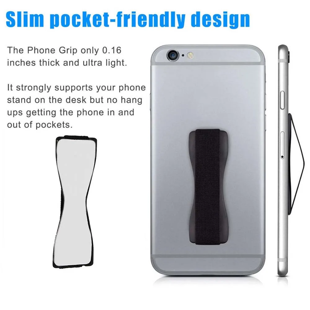 100% новый и высокое качество. 2 в 1 Функция: держатель для телефона на палец + подставка для телефона. Эластичный ремешок для рук помогает надежно удерживать ваш iPhone от выскальзывания из руки. Удобный захват и более безопасный для удержания, особенно для большего экрана телефона. Позволяет облегчить передачу текстовых сообщений, фотографий, селфи и удерживать телефон или планшет. Дизайн подставки: рукоятка телефона может использоваться в качестве подставки на столе, столе или любой другой плоской поверхности, наслаждайтесь приятными фильмами без рук в остальное время. Тонкий карманный дизайн: ручка для телефона толщиной всего 0,16 дюйма и очень легкая. Он настоятельно поддерживает ваш телефон стоять на столе, но не вешать трубку получить телефон в и из карманов. 3 м съемная лента позволяет мешку крепиться сильно и легко удаляться без каких-либо остатков. Поддерживает почти все смартфоны и чехлы с плоской поверхностью. Быстрая установка, просто снимите наклейку и нанесите клей на заднюю часть вашего устройства. Примечание: он не совместим с силиконовым чехлом .. Как использовать: 1. Очистите телефон или устройство. 2. Удалите бумажную подложку. 3. Нажмите вниз в течение 30 секунд. Спецификация: В комплект входит: 1 x эластичный держатель для телефона черного цвета. Мы отправляем товар в случайном цвете! Тип устройства: эластичный держатель для пальцев Материал: пластик + нейлон Функция 2-в-1: держатель для пальцев + подставка Размер: 2,95*0,87*0. 16 дюймов/7,5*2,2*0,4 см Вес: 0,88 унций/25 г