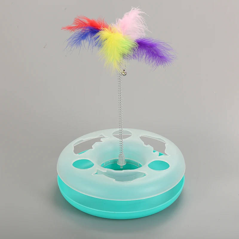 2018 игрушки для котов Красочные перо Весна сумасшедшие развлечения пластик Диск Играть активности Pet забавная игрушка со звуковым колокольчиком когтеточки