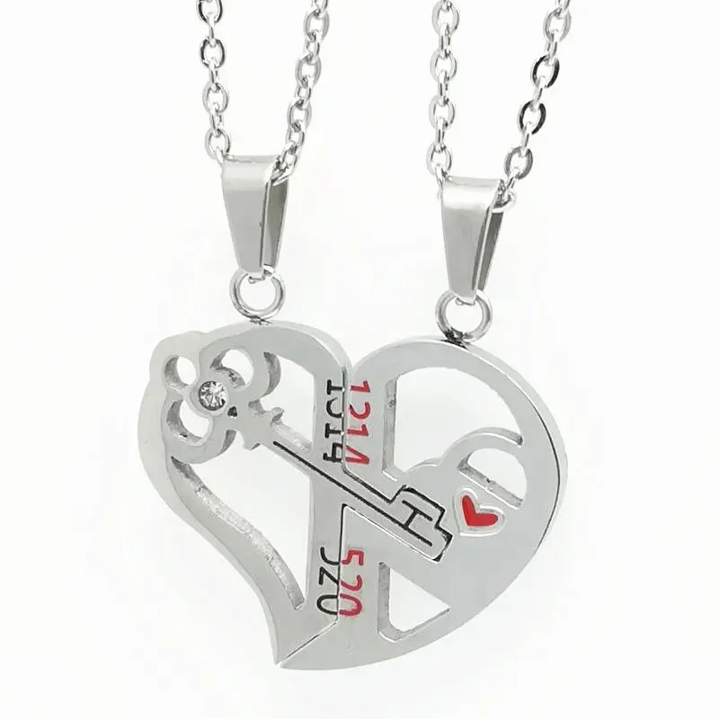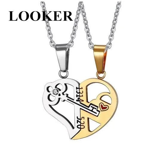 Романтическая парная подвеска LOOKER в форме ключа в форме сердца, комплект из колье с надписью «Her & His Love» для влюбленных, ко Дню Святого Валентина из нержавеющей стали