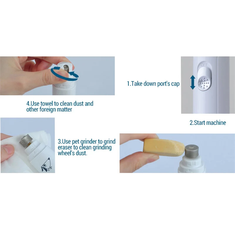 Для безопасности домашних животных, это должно быть менее 5 секунд для каждого времени шлифования, чтобы отрегулировать угол ухода за ногтями домашних животных.