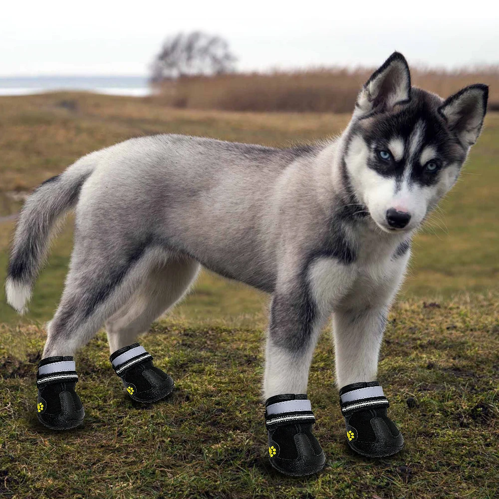 Зимняя обувь для собак; Ботинки для средних и больших собак; Светоотражающая водонепроницаемая обувь для животных; Нескользящие ботинки для больших собак; Зимние резиновые сапоги; Обувь