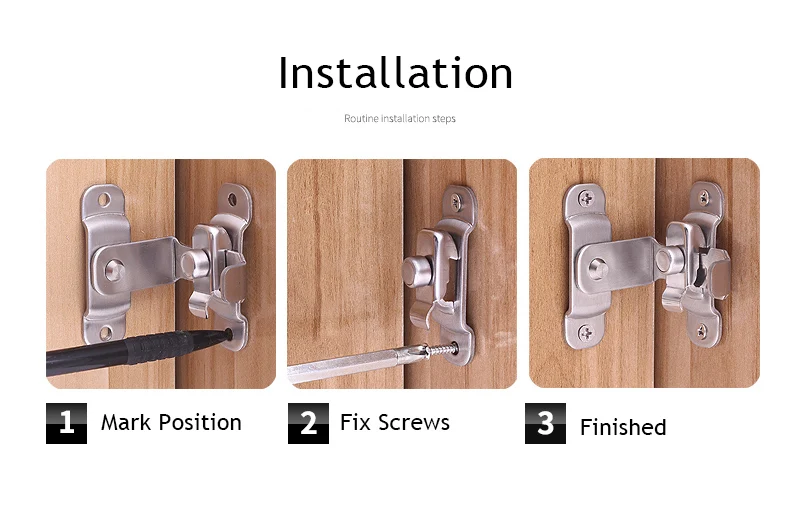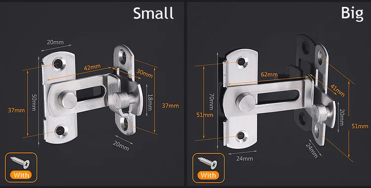 100% NAIERDIДва размера на выбор, подходит для всех дверейКонструкция на 90 градусов, более прочная и простая в установке.Изготовлен из нержавеющей стали, антикоррозийный, прочный и долговечный.Подходит для безопасности дверей и окон, примерочной комнаты, ванной комнаты, шкафа, ящика,Мебель, дверь отеля и т. Д.