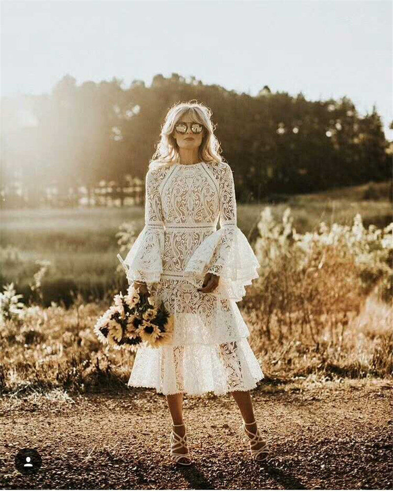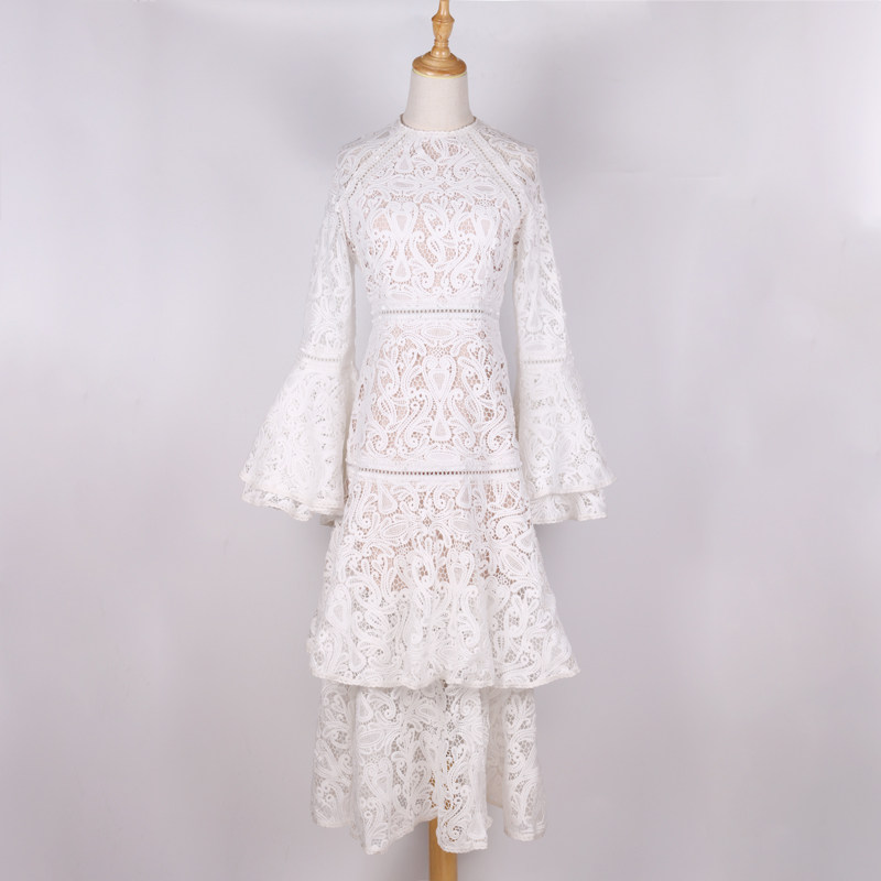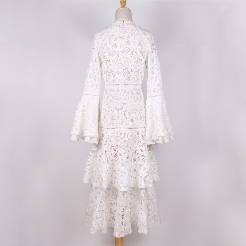 Осенне-весеннее элегантное женское шикарное кружевное платье с вышивкой, Пышное Бальное Платье с расклешенными рукавами, многослойное платье