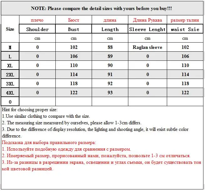 | Подсказка для выбора нужного размера: 1. использовать подобную одежду для сравнения с размером. 2. измерительный Размер mearsured сами по себе, пожалуйста, позвольте 1-3 см отличается. 3. благодаря различию разрешения дисплея, освещение и угол съемки, она будет существовать, едва заметная разница в цвете. |