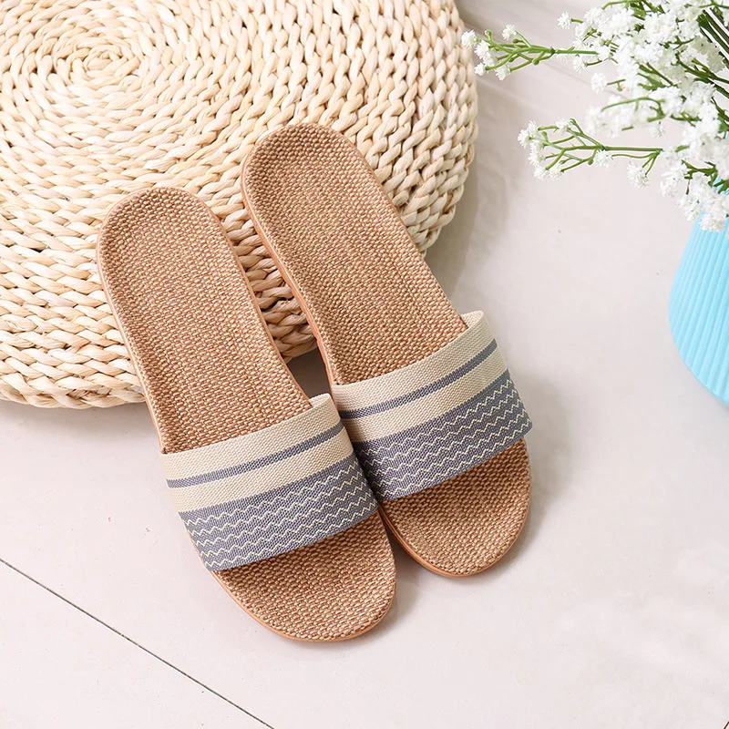 Мужские шлепанцы; Сандалии; Вьетнамки; Новинка 2018 года; Летняя модная дышащая нескользящая обувь из пеньки; Мужские домашние шлепанцы в полоску; Повседневная женская обувь