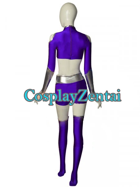 Костюм из двух предметов изготовлен из лайкры и спандекса, который эластичен и удобен в носке, Серебряная часть изготовлена из блестящей металлической ткани. Молния добавляется сзади.