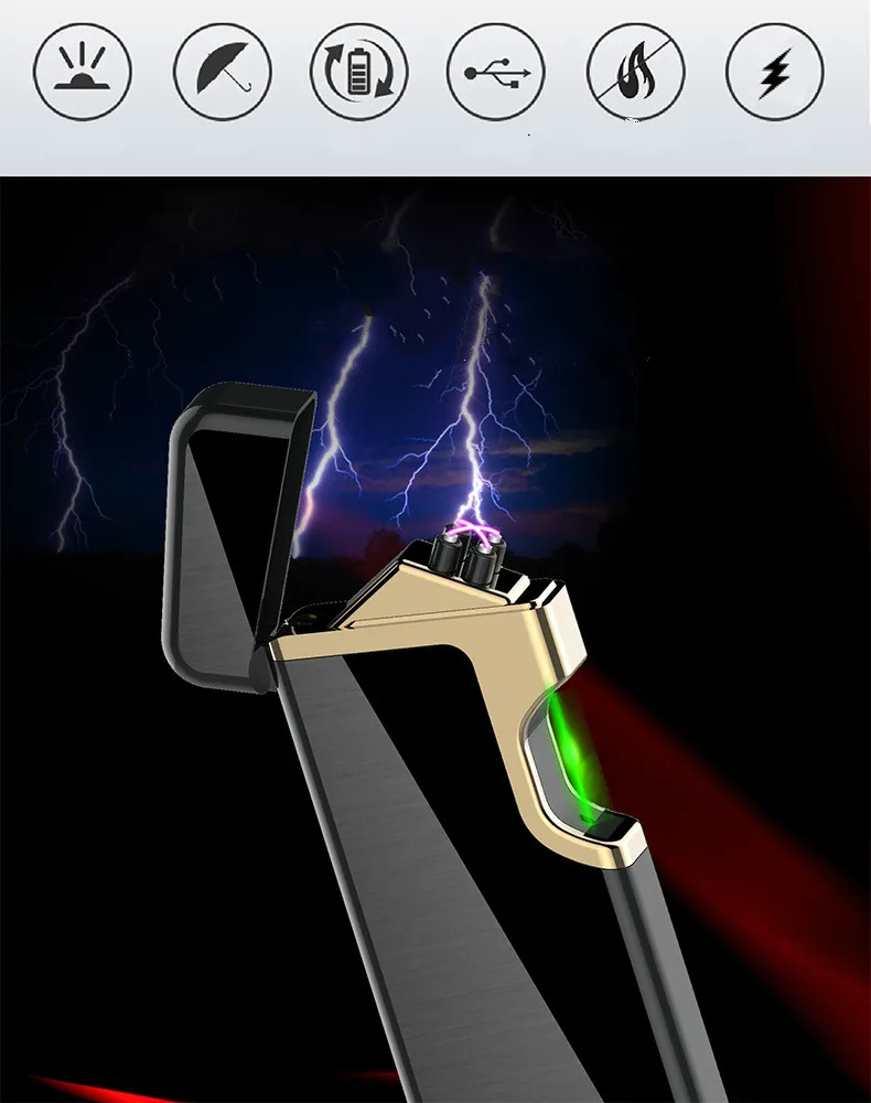 Металлическая ветрозащитная Usb перезаряжаемая двухдуговая плазменная импульсная Электронная зажигалка индикатор заряда батареи сигареты табачные зажигалки для дыма