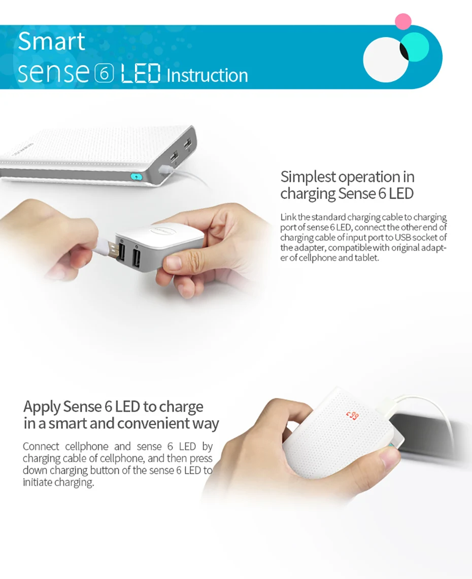 Спецификация: Номер модели: Sense 6 светодиодный (PH80) Емкость: 20000 мАч Номинальная энергия: 74 Вт/3,7 в Вход: DC5V 2.1A Выход: DC5V 2.1A/DC5V 1A Посылка Внешний аккумулятор ROMOSS sense 6 LED 20000, 1 шт. 1x кабель Micro USB 1 x Руководство пользователя Примечание: для первого использования снимите блок питания до 0, прежде чем зарядить его до 100%, чтобы активировать цифровой светодиодный экран.