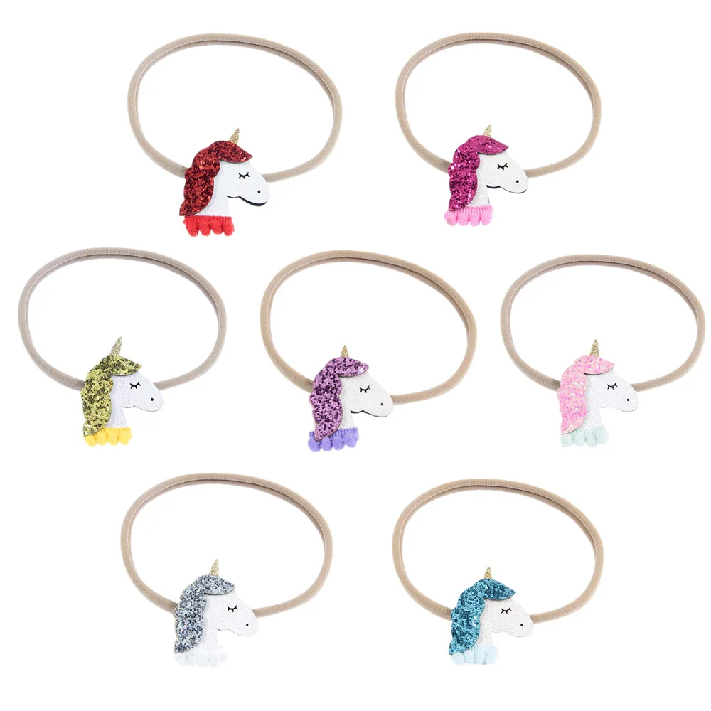 1 шт., блестящие эластичные резинки для волос с единорогом для девочек, детские резинки для волос, повязка для волос с милыми блестками, мультяшная лошадь, аксессуары волос резинка