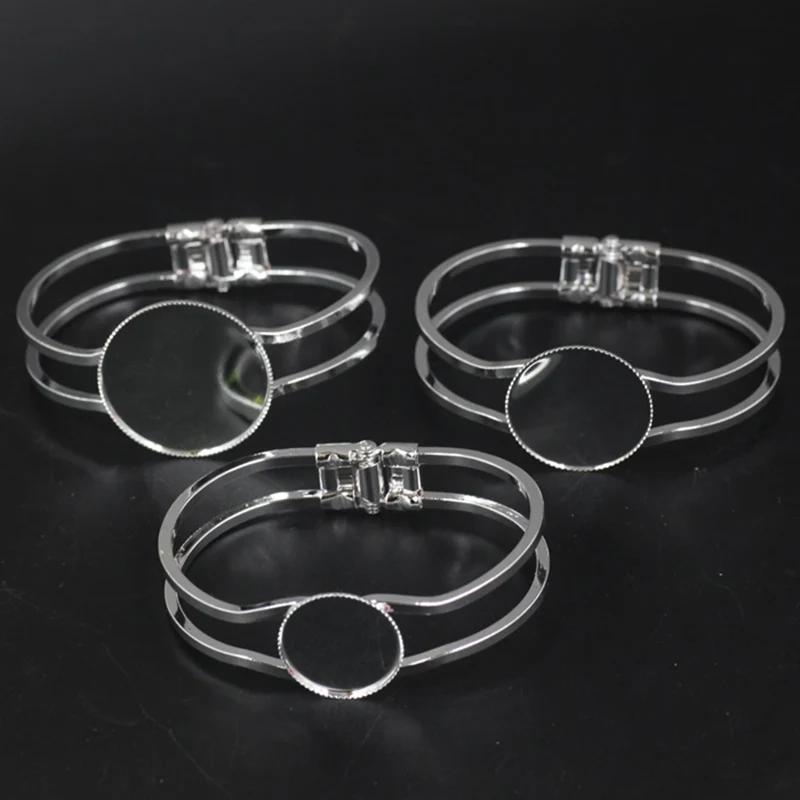 Высокое качество 25 мм посеребренный Браслет База Пустые фурнитура лоток рамка Установка Diy Кабошон Камея (08118)