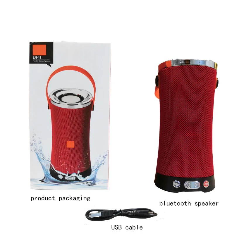 Название продукта: Беспроводная колонка Размеры: 81 мм * 81 мм * 154 мм Вес единицы: 410 г Акварель: черный, Щепка, синий, красный Версия BT: V4.2 + EDR Мощность: 3 Вт Динамик: 50 мм плюс * 2 Рабочее расстояние: 10 м беспроводная гарнитура Модель: Беспроводной динамик Поддержка A2DP Зарядка: 5 В/500 мАч Батарея Емкость: 3,7 В 1200 мАч Зарядное устройство время: 3-4hours Время работы: 6-8 часов Диапазон воспроизводимых частот: 20-20000 Гц Упаковка включает 1. LN-18 2. USB кабель * 1