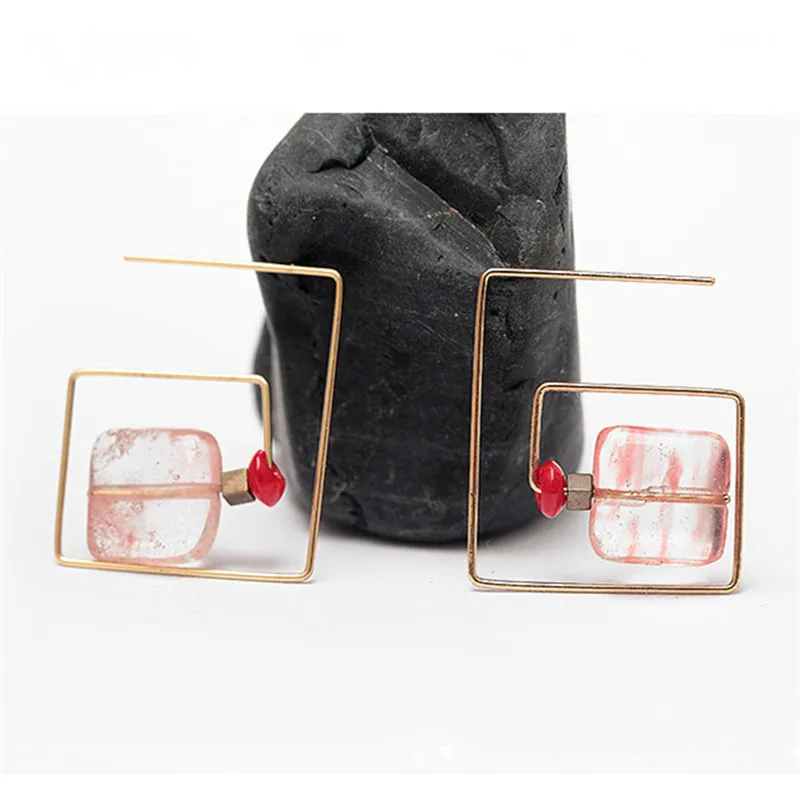 Милые элегантные украшения аксессуар простой геометрический дизайн Висячие серьги розовый сладкий конфеты натуральный камень серьги для женщин подарок