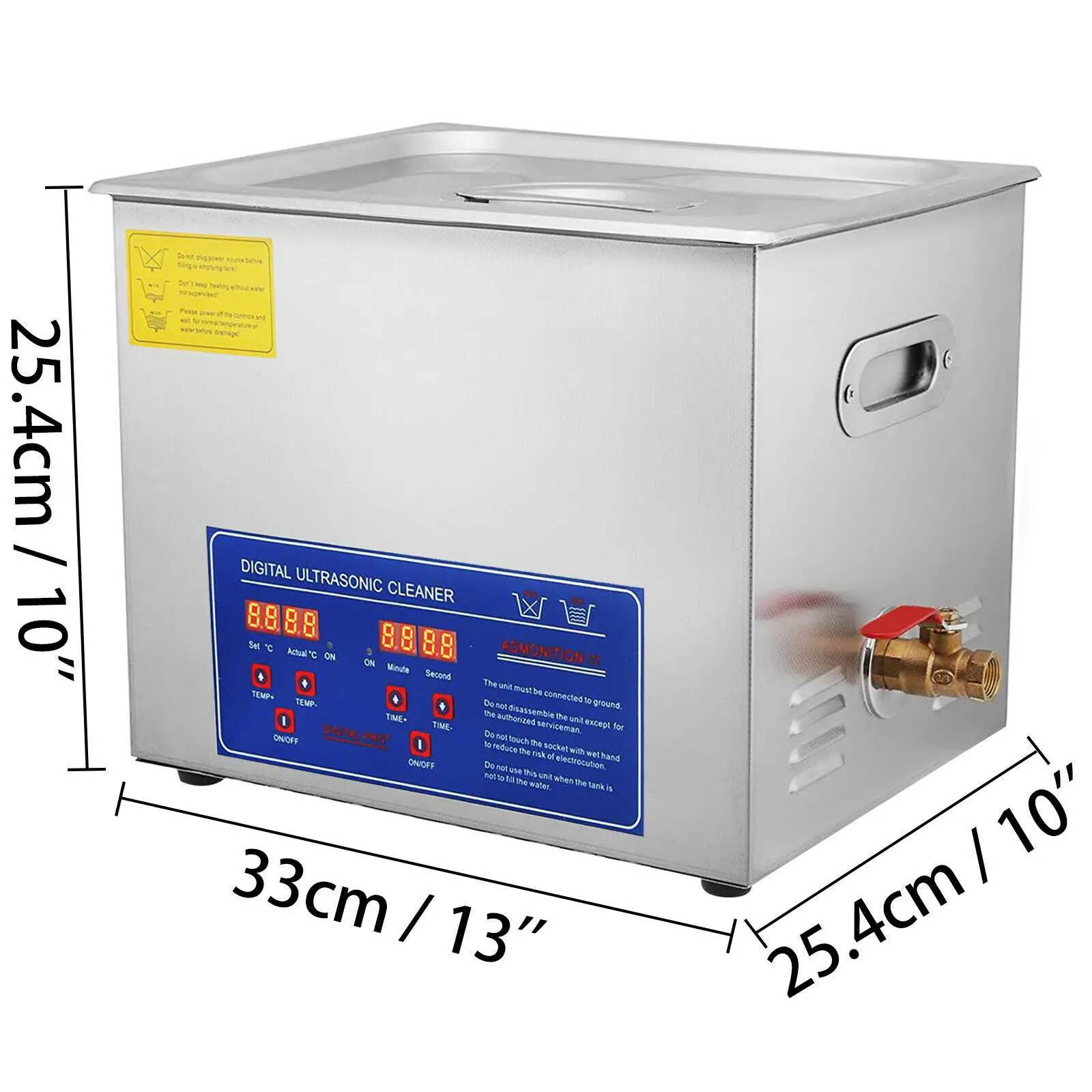 Размер ультразвукового очистителя:13 "x 10" x 10 "/33x25,4x25,4 см(Д x Ш x В)