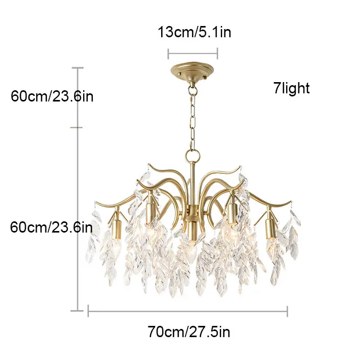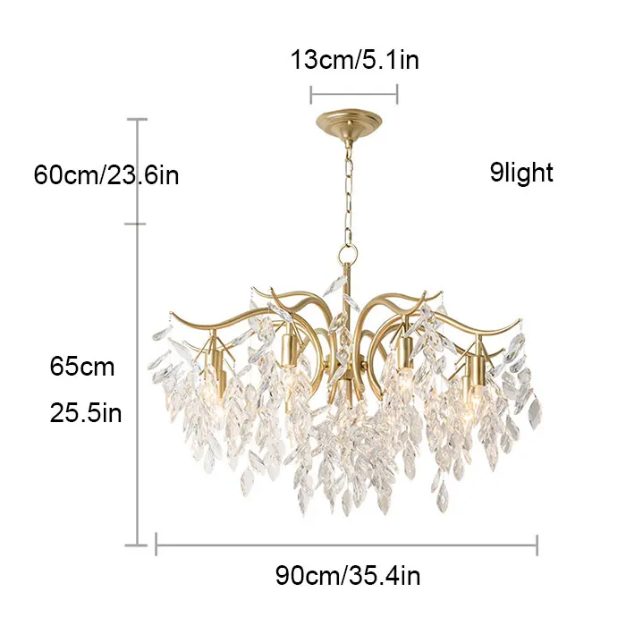 Материалы: металл, хрусталь Вход напряжение: AC 110-240V 50/60Hz Источник света: лампа накаливания, энергосберегающая лампа или светодиодный светильник Тип лампы: 7/9 шт. E14 лампы Лампа включает или нет: лампочки не включены Применение: гостиная, столовая, кухня, спальня, офис, магазин, ресторан, лобби и т. Д.
