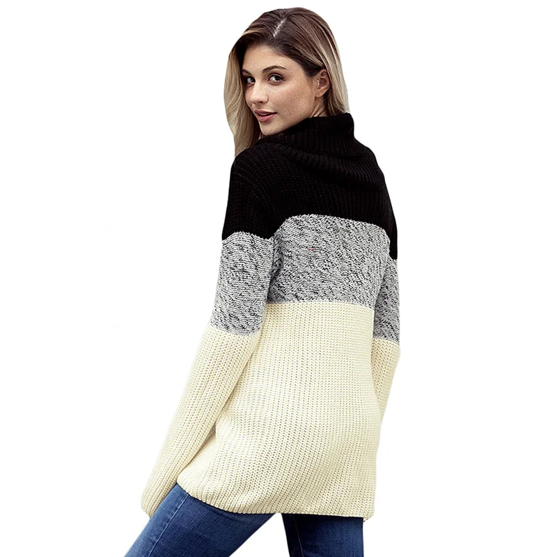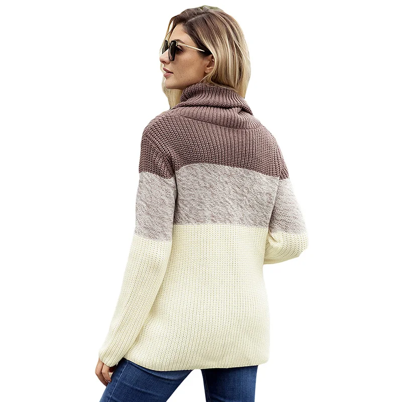 Женский свитер с воротником-хомутом черного и коричневого цвета, теплый вязаный свитер в полоску с высоким воротником для женщин, осенне-зимняя одежда