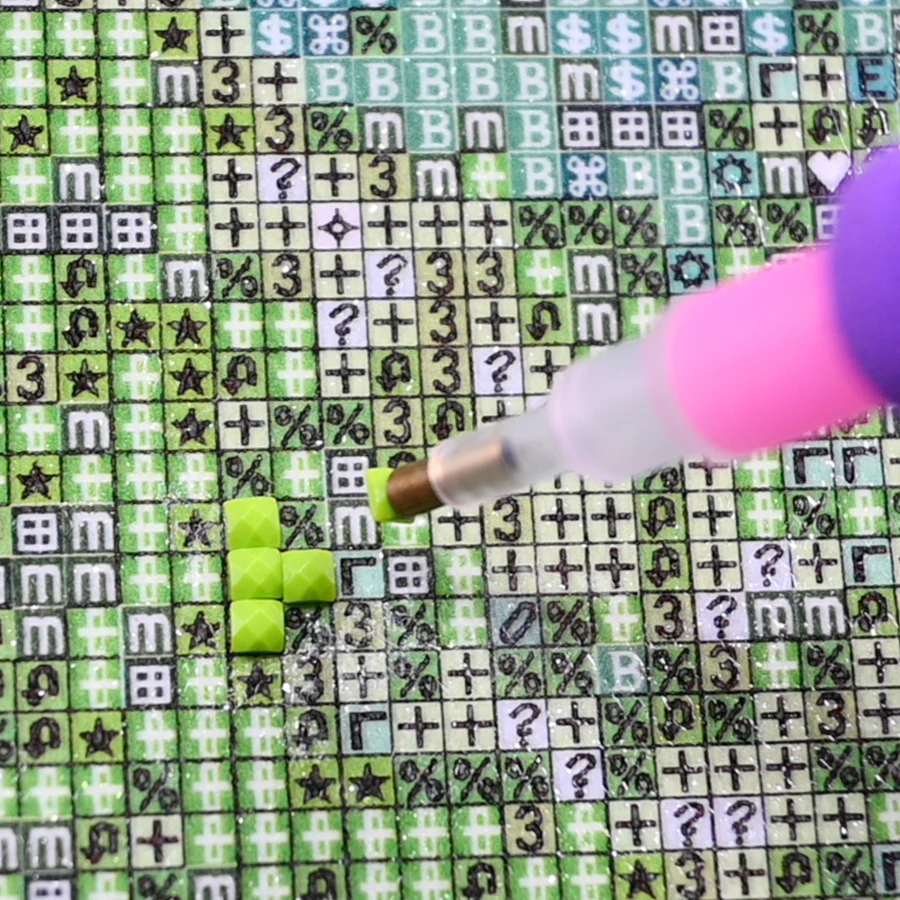 4. Окуните головку ручки клеем, чтобы она могла приклеить один алмаз; затем Наклейте алмаз на холст с соответствующим символом. Пинцет также может использоваться вместо ручки;