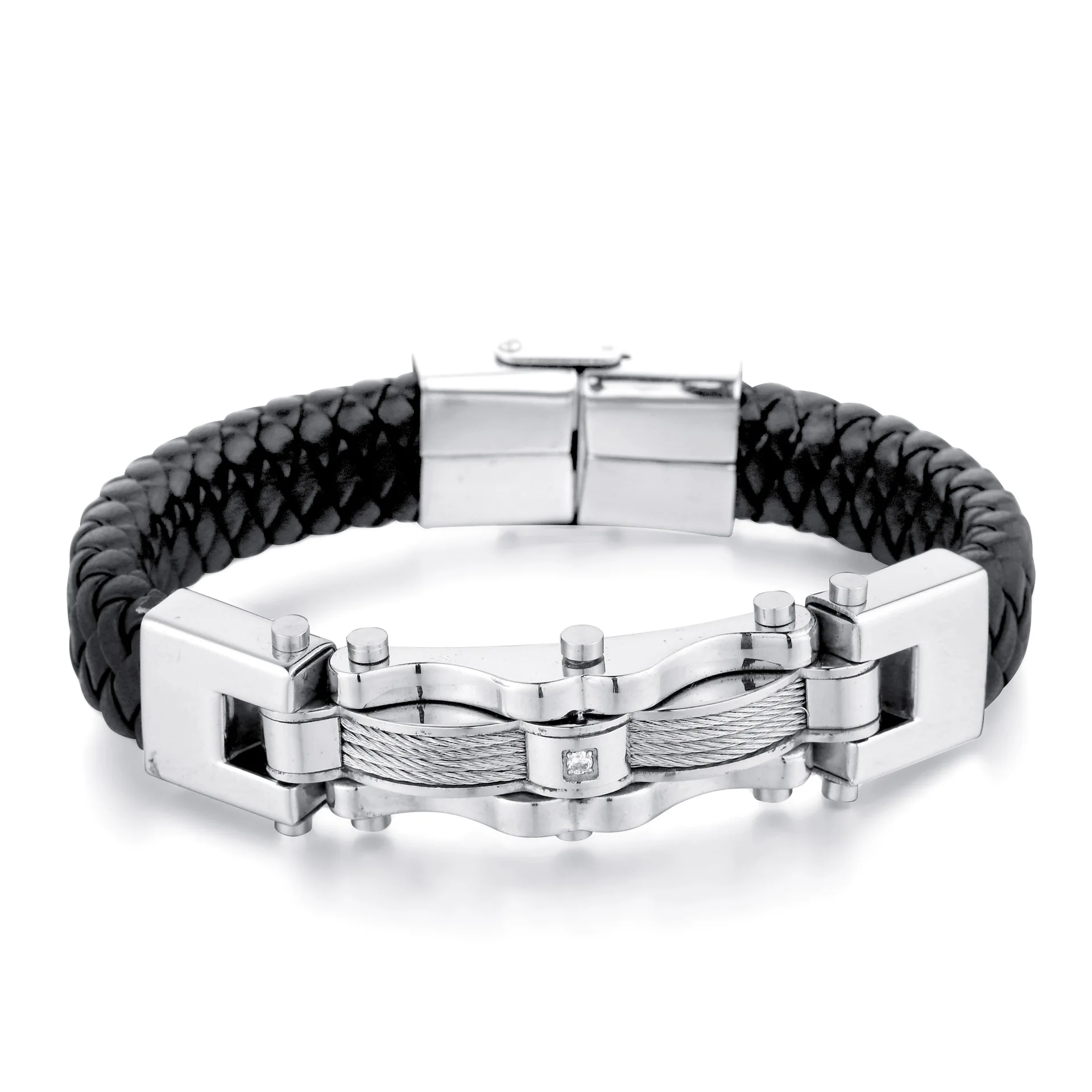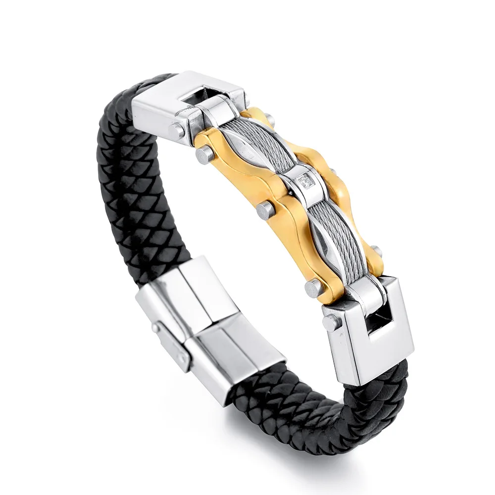 Brand NameARMNVNVModel NumberAV1880100FunctiondecorationMaterialLeatherGenderMenStyleTRENDYItem TypeBraceletsMetals TypeStainless SteelShape\patternas photoesFine or FashionFashionCompatibilityAll CompatibleSetting TypeNoneBracelets TypeWrap BraceletsChain Typeas photoesClasp Typeas photoesMeasurement unit100000015Sold insell_by_pieceEach pack1Package weight0.100Package size - length (cm)20Package size - width (cm)20Package size - height (cm)10Coloras photoesSizeAs descriptionDescriptionPunk 316L Stainless Steel LinK Chain Braided Cuff Leather Bracelets