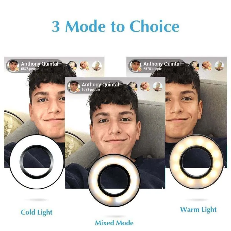 LETSGR светодиодный кольцевой светильник для селфи с держателем для сотового телефона, гибкий, для мобильных телефонов, держатель для зажима, настольная лампа, светодиодный светильник
