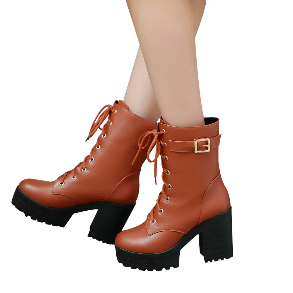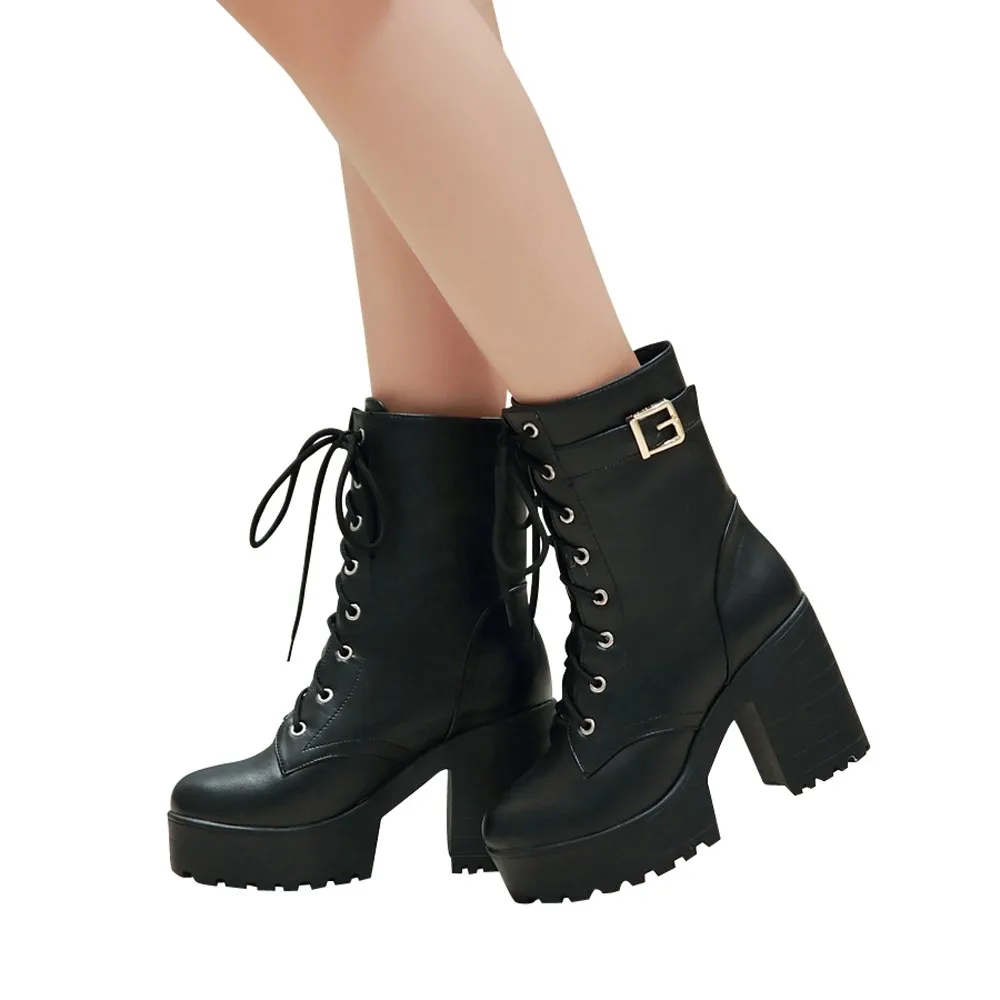 Ботильоны на толстом каблуке Ботинки martin на высоком каблуке женские ботинки на толстой подошве со шнуровкой Женская обувь scarpe donna