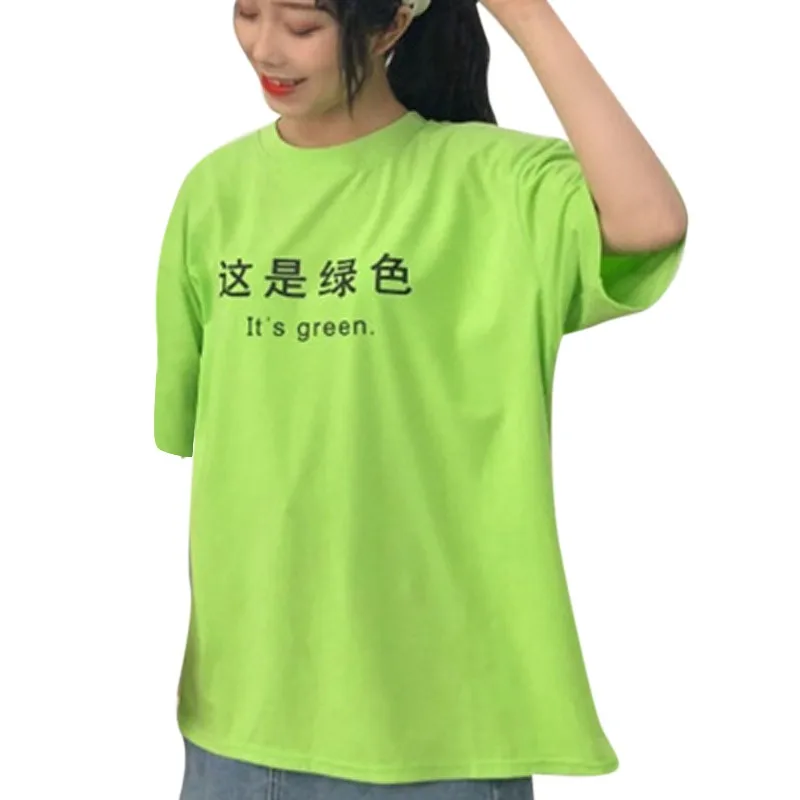 Футболки в Корейском стиле с круглым воротником и буквенным принтом, Повседневная футболка с коротким рукавом для подростков, свободные повседневные топы для женщин, 4 цвета