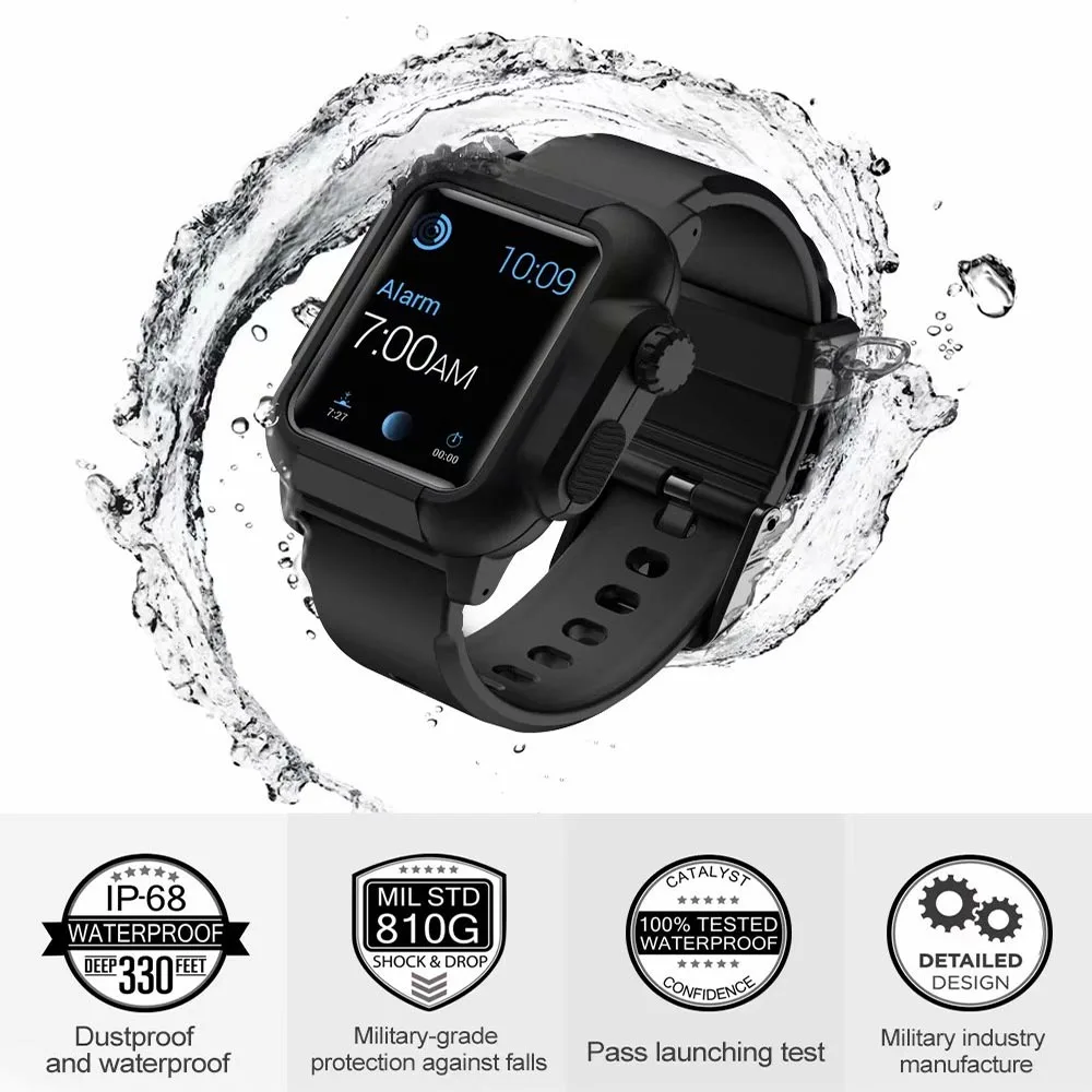 Спортивный силиконовый ремешок для Apple Watch Band 42/40/44 мм водонепроницаемый защитный чехол + сменный Браслет для iWatch Series SE/6/5/4/3/2
